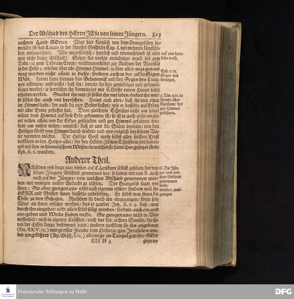 August Hermann Franckens S.Theol.Prof.und Past. Sonn= Fest= und Apostel=Tags=Predigten / Darinnen Die zum wahren Christenthum gehörige nöthigste und vornehmste Materien abgehandelt sind; Nunmehro von neuen wieder durchgesehen / und verbessert / Nebst den darzu nützlichen Registern. Die dritte Edition. HALLE / gedruckt und verlegt im Wäysenhause / MDCCIX. Mit Königl.Preuß.und Churfl.Brandenb.Privil.