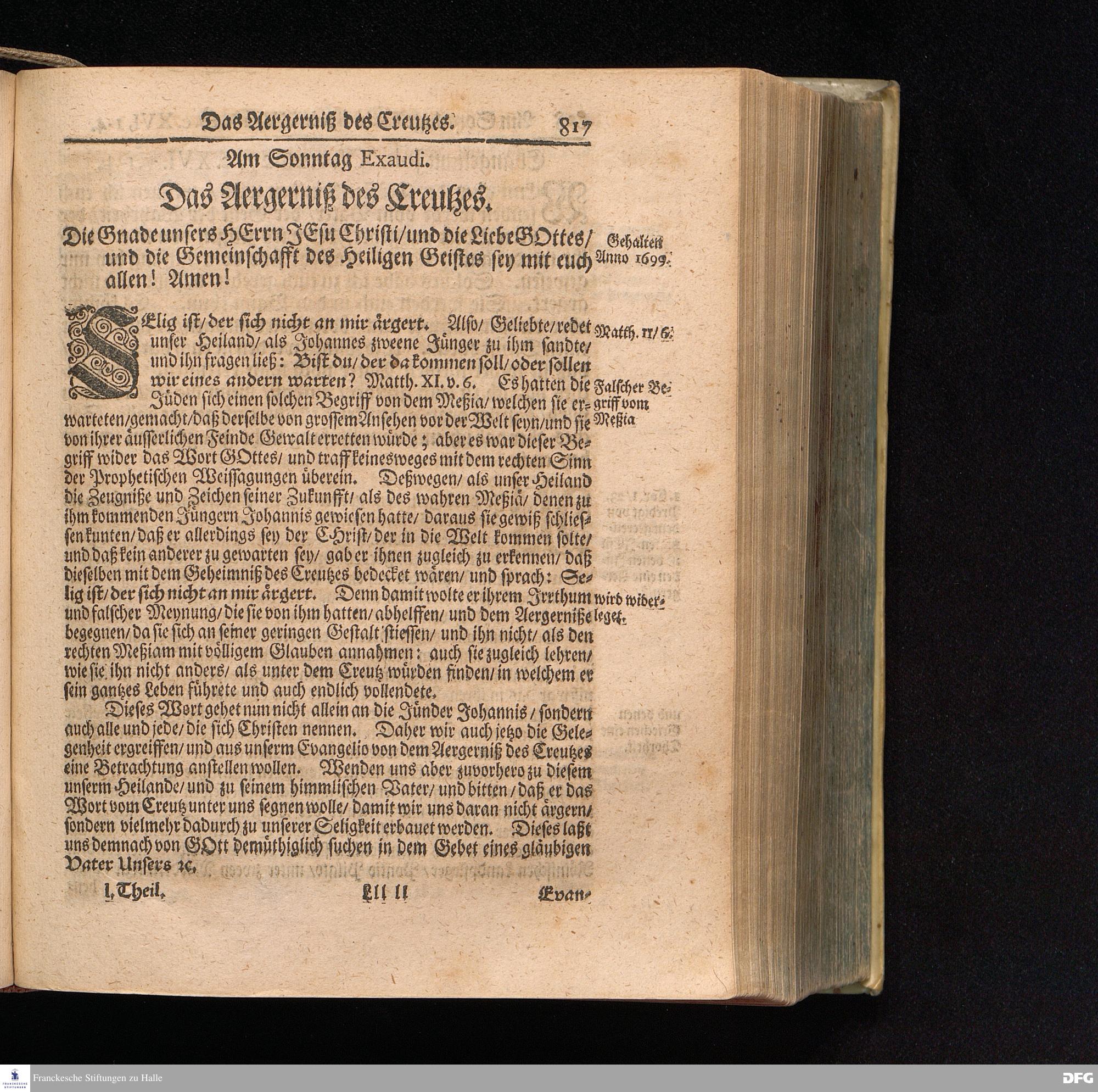 August Hermann Franckens S.Theol.Prof.und Past. Sonn= Fest= und Apostel=Tags=Predigten / Darinnen Die zum wahren Christenthum gehörige nöthigste und vornehmste Materien abgehandelt sind; Nunmehro von neuen wieder durchgesehen / und verbessert / Nebst den darzu nützlichen Registern. Die dritte Edition. HALLE / gedruckt und verlegt im Wäysenhause / MDCCIX. Mit Königl.Preuß.und Churfl.Brandenb.Privil.