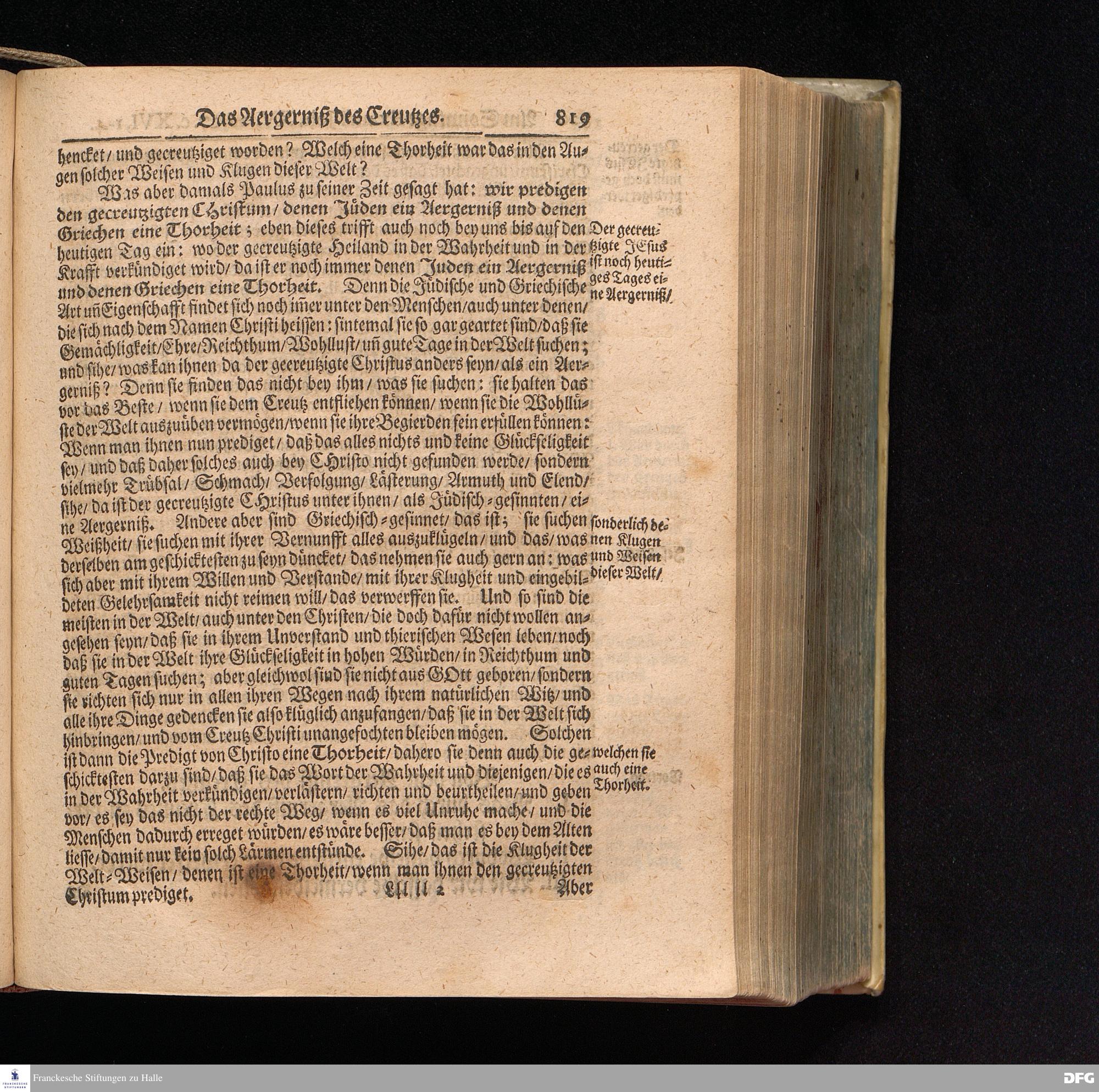 August Hermann Franckens S.Theol.Prof.und Past. Sonn= Fest= und Apostel=Tags=Predigten / Darinnen Die zum wahren Christenthum gehörige nöthigste und vornehmste Materien abgehandelt sind; Nunmehro von neuen wieder durchgesehen / und verbessert / Nebst den darzu nützlichen Registern. Die dritte Edition. HALLE / gedruckt und verlegt im Wäysenhause / MDCCIX. Mit Königl.Preuß.und Churfl.Brandenb.Privil.
