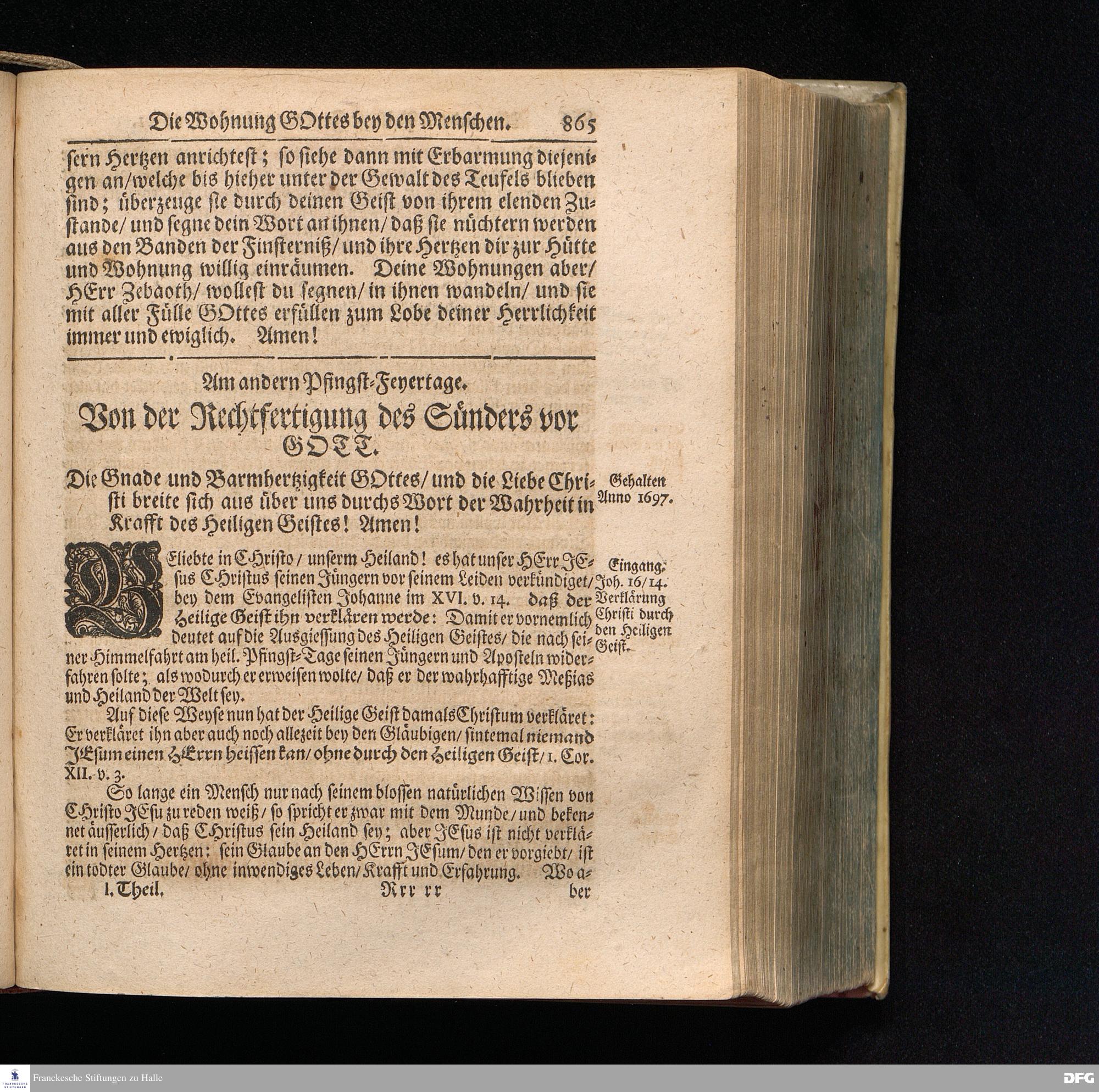 August Hermann Franckens S.Theol.Prof.und Past. Sonn= Fest= und Apostel=Tags=Predigten / Darinnen Die zum wahren Christenthum gehörige nöthigste und vornehmste Materien abgehandelt sind; Nunmehro von neuen wieder durchgesehen / und verbessert / Nebst den darzu nützlichen Registern. Die dritte Edition. HALLE / gedruckt und verlegt im Wäysenhause / MDCCIX. Mit Königl.Preuß.und Churfl.Brandenb.Privil.