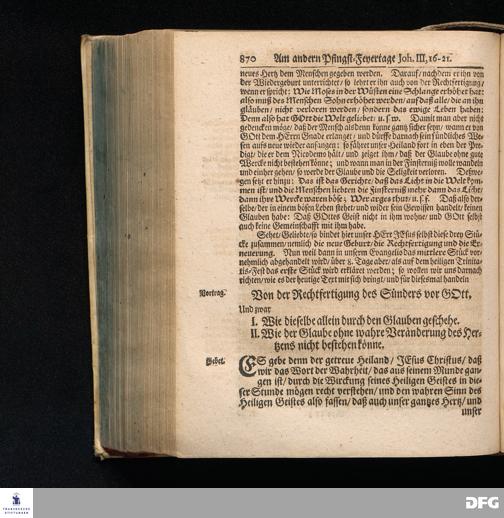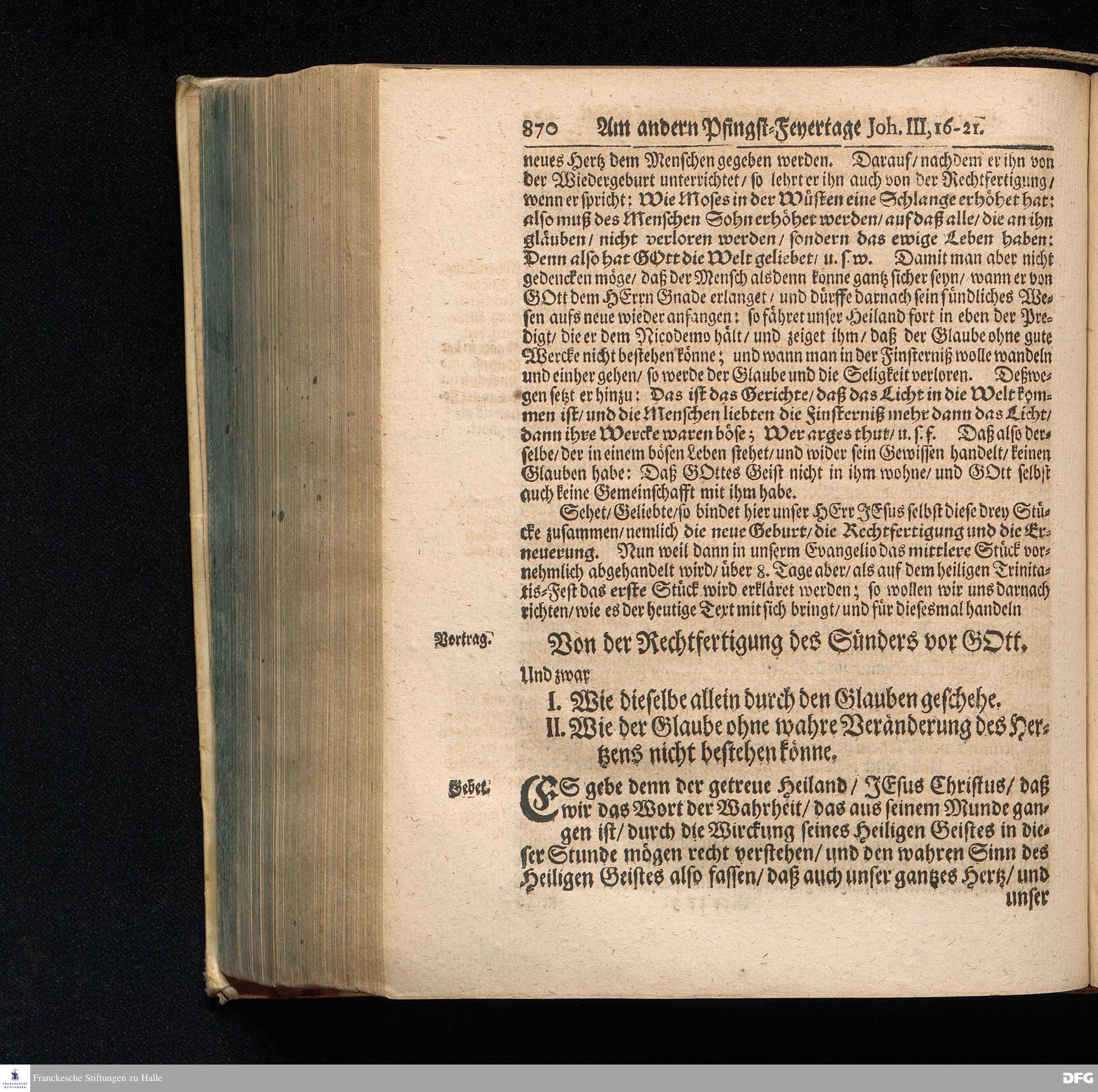 August Hermann Franckens S.Theol.Prof.und Past. Sonn= Fest= und Apostel=Tags=Predigten / Darinnen Die zum wahren Christenthum gehörige nöthigste und vornehmste Materien abgehandelt sind; Nunmehro von neuen wieder durchgesehen / und verbessert / Nebst den darzu nützlichen Registern. Die dritte Edition. HALLE / gedruckt und verlegt im Wäysenhause / MDCCIX. Mit Königl.Preuß.und Churfl.Brandenb.Privil.