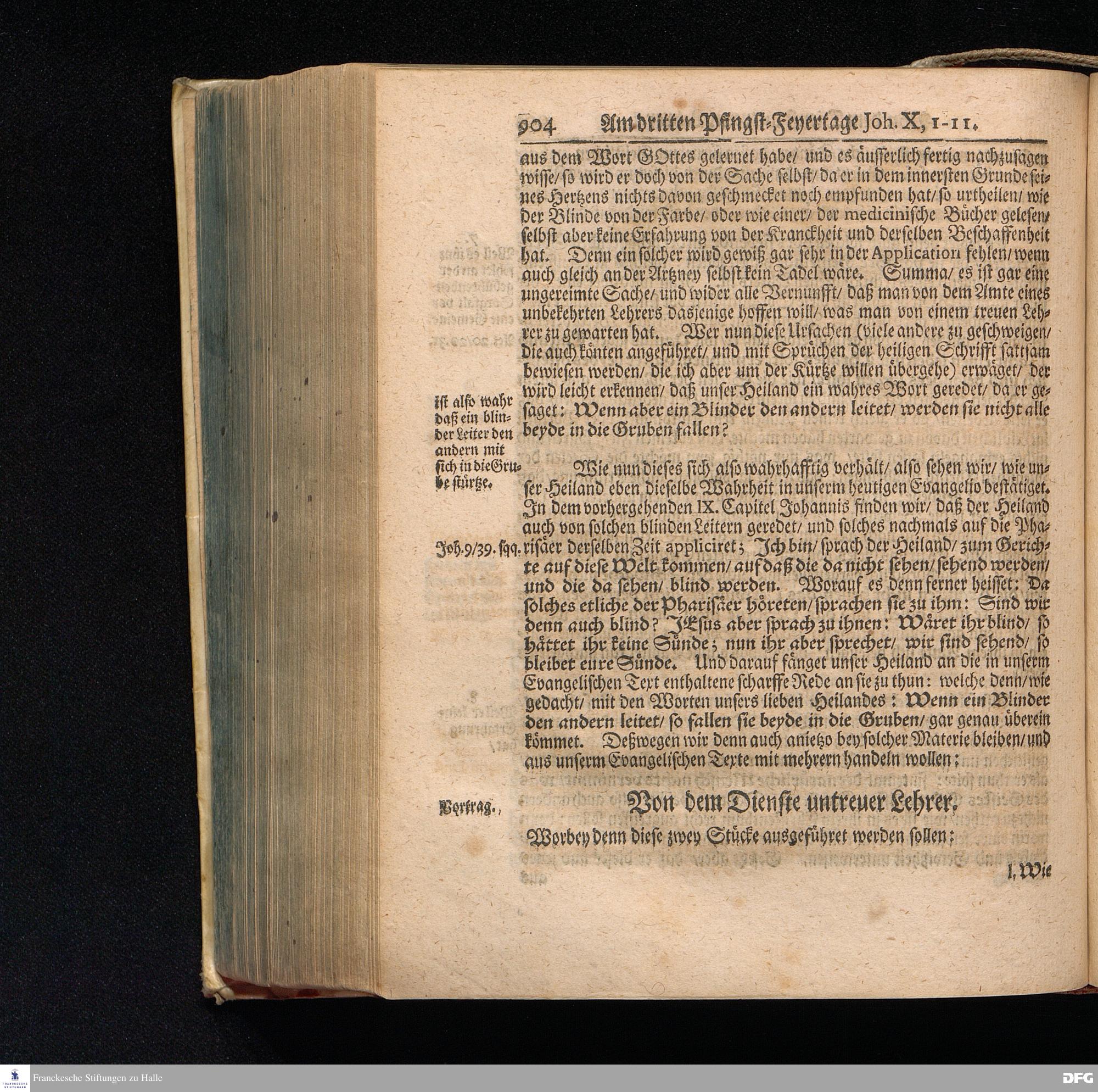 August Hermann Franckens S.Theol.Prof.und Past. Sonn= Fest= und Apostel=Tags=Predigten / Darinnen Die zum wahren Christenthum gehörige nöthigste und vornehmste Materien abgehandelt sind; Nunmehro von neuen wieder durchgesehen / und verbessert / Nebst den darzu nützlichen Registern. Die dritte Edition. HALLE / gedruckt und verlegt im Wäysenhause / MDCCIX. Mit Königl.Preuß.und Churfl.Brandenb.Privil.