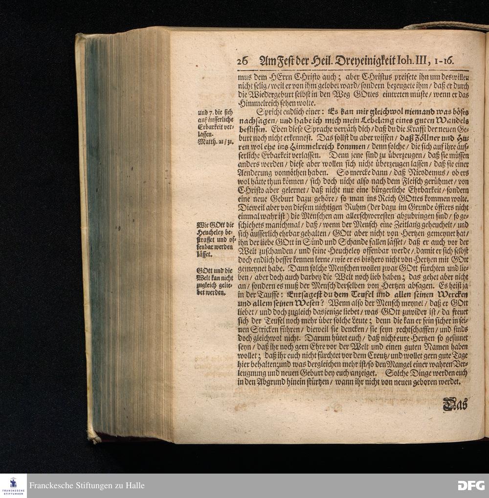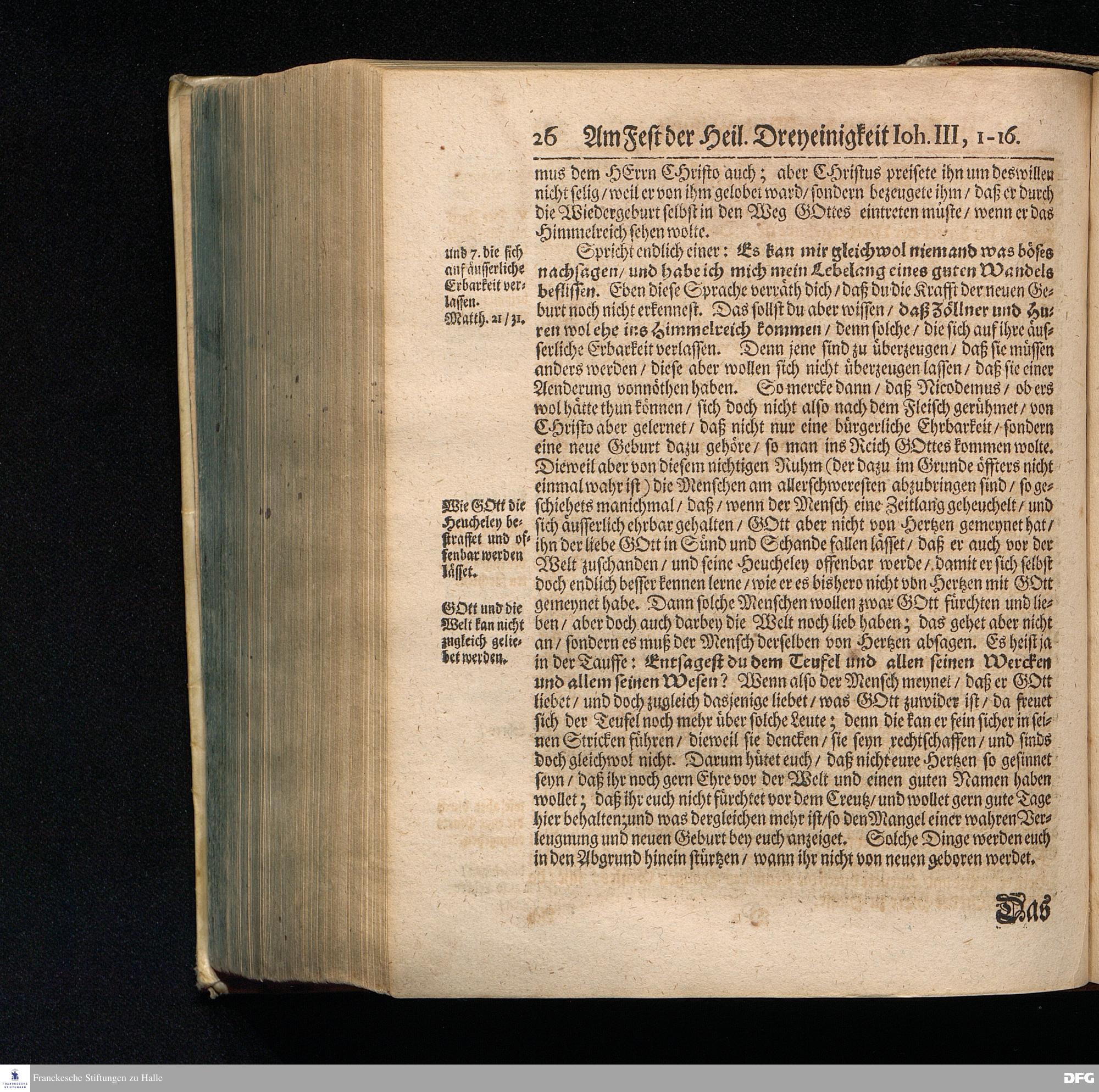August Hermann Franckens S.Theol.Prof.und Past. Sonn= Fest= und Apostel=Tags=Predigten / Darinnen Die zum wahren Christenthum gehörige nöthigste und vornehmste Materien abgehandelt sind; Nunmehro von neuen wieder durchgesehen / und verbessert / Nebst den darzu nützlichen Registern. Die dritte Edition. HALLE / gedruckt und verlegt im Wäysenhause / MDCCIX. Mit Königl.Preuß.und Churfl.Brandenb.Privil.