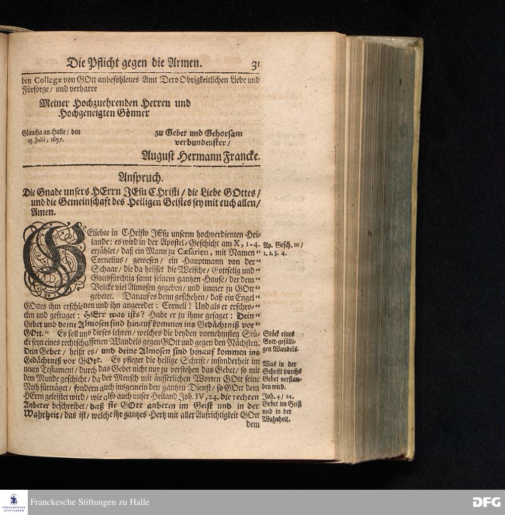 August Hermann Franckens S.Theol.Prof.und Past. Sonn= Fest= und Apostel=Tags=Predigten / Darinnen Die zum wahren Christenthum gehörige nöthigste und vornehmste Materien abgehandelt sind; Nunmehro von neuen wieder durchgesehen / und verbessert / Nebst den darzu nützlichen Registern. Die dritte Edition. HALLE / gedruckt und verlegt im Wäysenhause / MDCCIX. Mit Königl.Preuß.und Churfl.Brandenb.Privil.