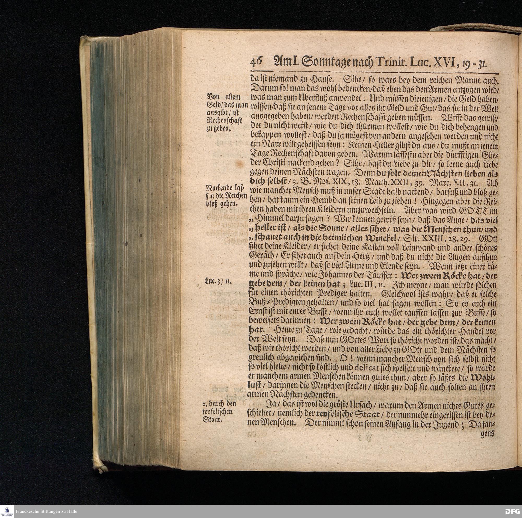 August Hermann Franckens S.Theol.Prof.und Past. Sonn= Fest= und Apostel=Tags=Predigten / Darinnen Die zum wahren Christenthum gehörige nöthigste und vornehmste Materien abgehandelt sind; Nunmehro von neuen wieder durchgesehen / und verbessert / Nebst den darzu nützlichen Registern. Die dritte Edition. HALLE / gedruckt und verlegt im Wäysenhause / MDCCIX. Mit Königl.Preuß.und Churfl.Brandenb.Privil.