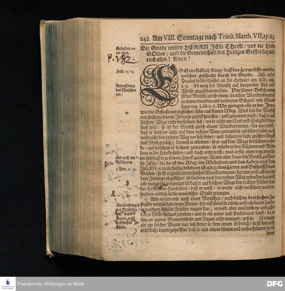 August Hermann Franckens S.Theol.Prof.und Past. Sonn= Fest= und Apostel=Tags=Predigten / Darinnen Die zum wahren Christenthum gehörige nöthigste und vornehmste Materien abgehandelt sind; Nunmehro von neuen wieder durchgesehen / und verbessert / Nebst den darzu nützlichen Registern. Die dritte Edition. HALLE / gedruckt und verlegt im Wäysenhause / MDCCIX. Mit Königl.Preuß.und Churfl.Brandenb.Privil.