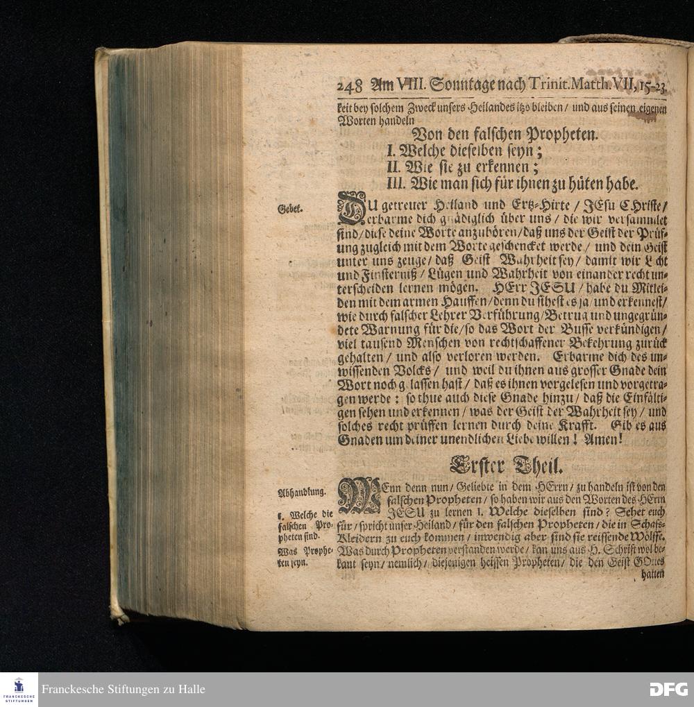August Hermann Franckens S.Theol.Prof.und Past. Sonn= Fest= und Apostel=Tags=Predigten / Darinnen Die zum wahren Christenthum gehörige nöthigste und vornehmste Materien abgehandelt sind; Nunmehro von neuen wieder durchgesehen / und verbessert / Nebst den darzu nützlichen Registern. Die dritte Edition. HALLE / gedruckt und verlegt im Wäysenhause / MDCCIX. Mit Königl.Preuß.und Churfl.Brandenb.Privil.
