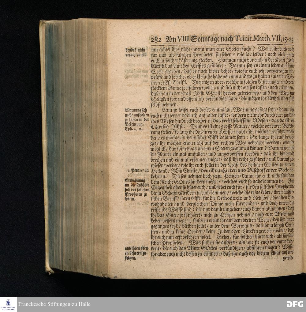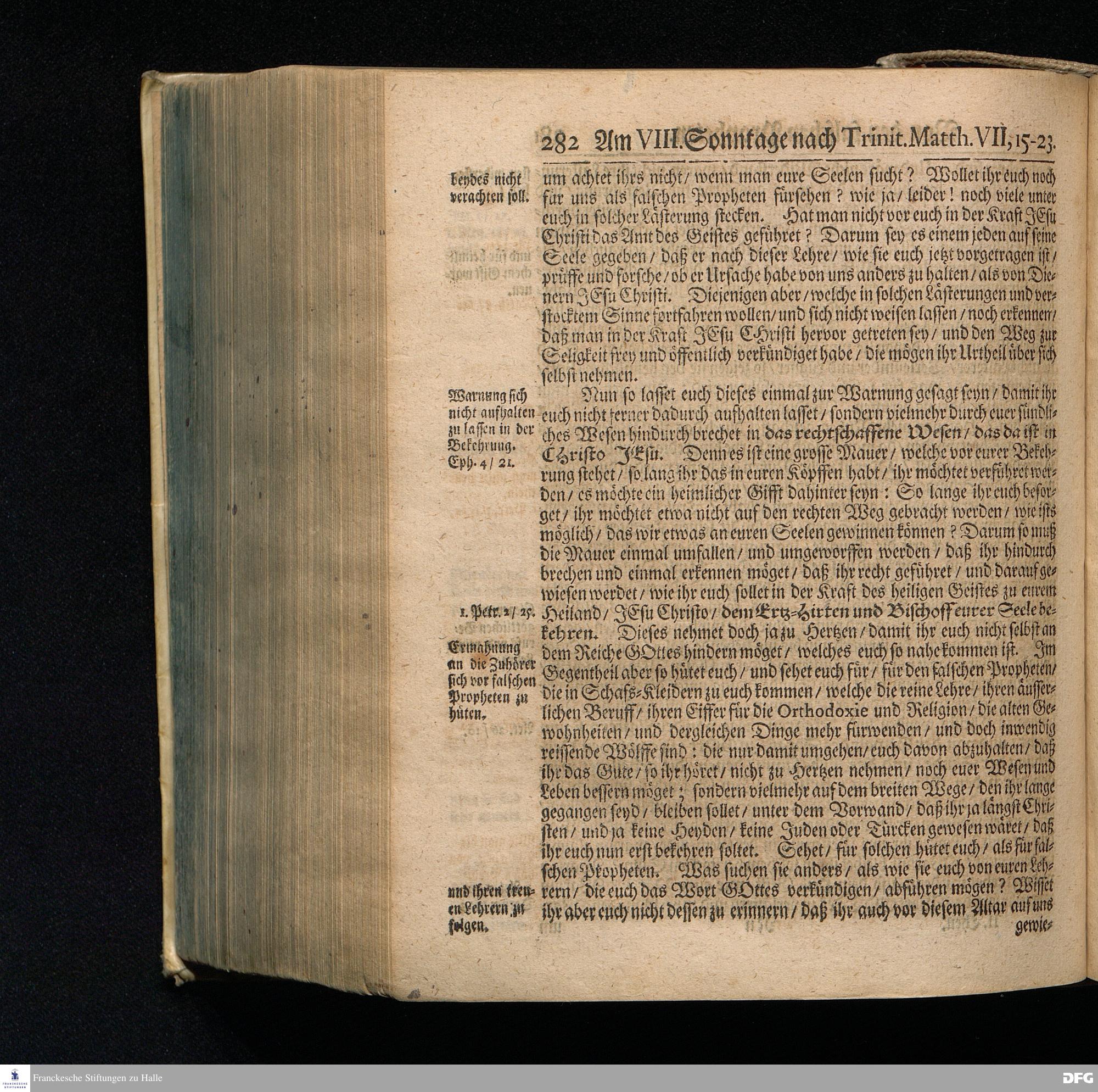August Hermann Franckens S.Theol.Prof.und Past. Sonn= Fest= und Apostel=Tags=Predigten / Darinnen Die zum wahren Christenthum gehörige nöthigste und vornehmste Materien abgehandelt sind; Nunmehro von neuen wieder durchgesehen / und verbessert / Nebst den darzu nützlichen Registern. Die dritte Edition. HALLE / gedruckt und verlegt im Wäysenhause / MDCCIX. Mit Königl.Preuß.und Churfl.Brandenb.Privil.