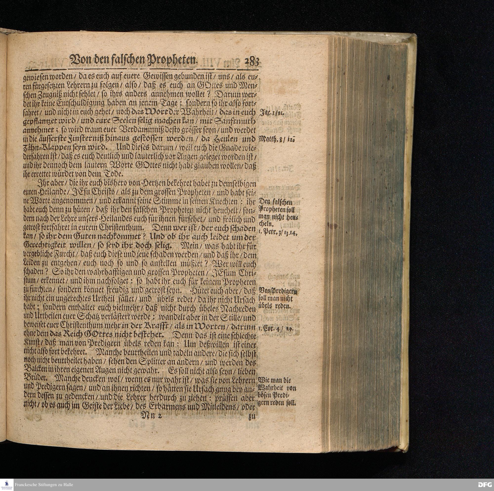 August Hermann Franckens S.Theol.Prof.und Past. Sonn= Fest= und Apostel=Tags=Predigten / Darinnen Die zum wahren Christenthum gehörige nöthigste und vornehmste Materien abgehandelt sind; Nunmehro von neuen wieder durchgesehen / und verbessert / Nebst den darzu nützlichen Registern. Die dritte Edition. HALLE / gedruckt und verlegt im Wäysenhause / MDCCIX. Mit Königl.Preuß.und Churfl.Brandenb.Privil.