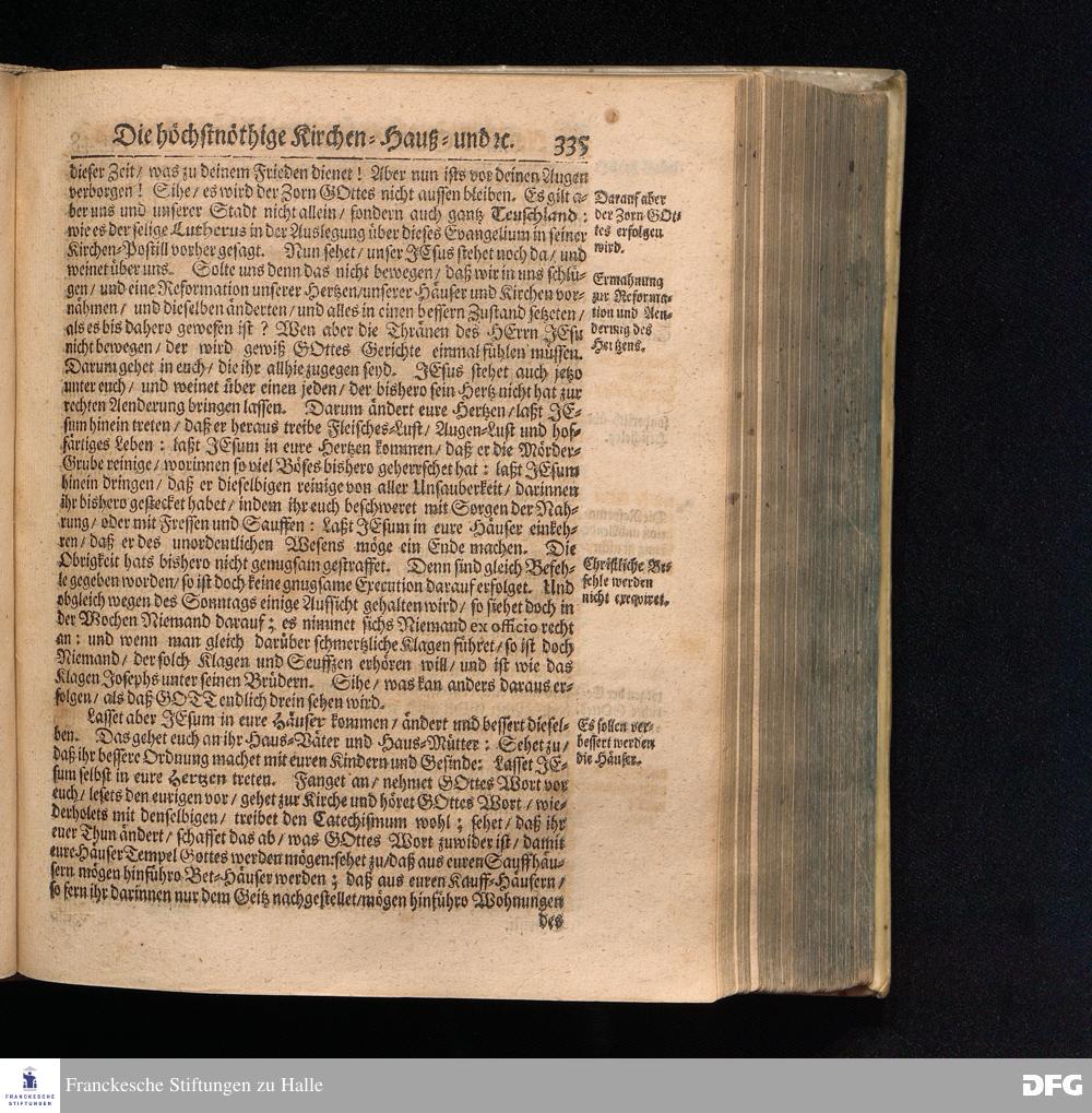 August Hermann Franckens S.Theol.Prof.und Past. Sonn= Fest= und Apostel=Tags=Predigten / Darinnen Die zum wahren Christenthum gehörige nöthigste und vornehmste Materien abgehandelt sind; Nunmehro von neuen wieder durchgesehen / und verbessert / Nebst den darzu nützlichen Registern. Die dritte Edition. HALLE / gedruckt und verlegt im Wäysenhause / MDCCIX. Mit Königl.Preuß.und Churfl.Brandenb.Privil.