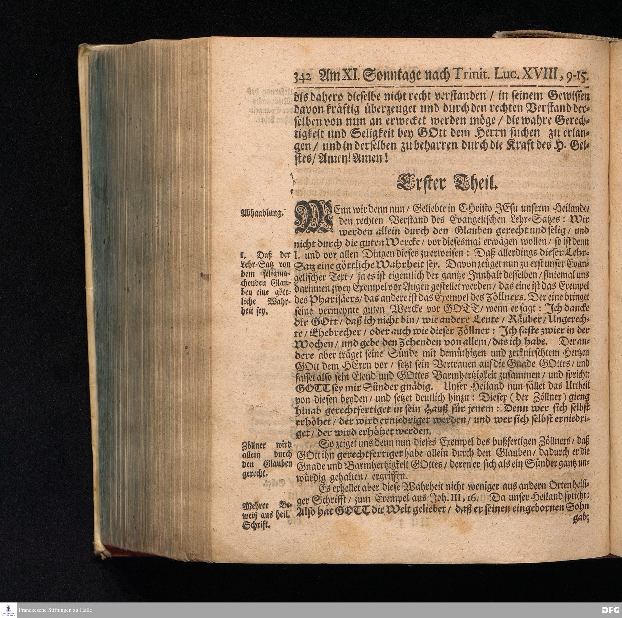 August Hermann Franckens S.Theol.Prof.und Past. Sonn= Fest= und Apostel=Tags=Predigten / Darinnen Die zum wahren Christenthum gehörige nöthigste und vornehmste Materien abgehandelt sind; Nunmehro von neuen wieder durchgesehen / und verbessert / Nebst den darzu nützlichen Registern. Die dritte Edition. HALLE / gedruckt und verlegt im Wäysenhause / MDCCIX. Mit Königl.Preuß.und Churfl.Brandenb.Privil.