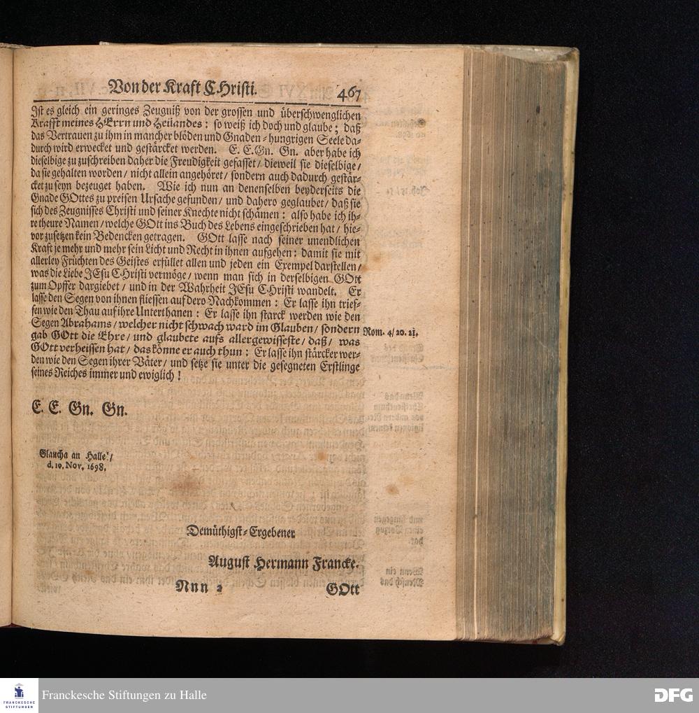 August Hermann Franckens S.Theol.Prof.und Past. Sonn= Fest= und Apostel=Tags=Predigten / Darinnen Die zum wahren Christenthum gehörige nöthigste und vornehmste Materien abgehandelt sind; Nunmehro von neuen wieder durchgesehen / und verbessert / Nebst den darzu nützlichen Registern. Die dritte Edition. HALLE / gedruckt und verlegt im Wäysenhause / MDCCIX. Mit Königl.Preuß.und Churfl.Brandenb.Privil.