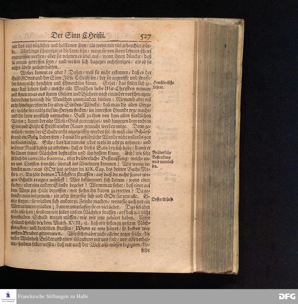 August Hermann Franckens S.Theol.Prof.und Past. Sonn= Fest= und Apostel=Tags=Predigten / Darinnen Die zum wahren Christenthum gehörige nöthigste und vornehmste Materien abgehandelt sind; Nunmehro von neuen wieder durchgesehen / und verbessert / Nebst den darzu nützlichen Registern. Die dritte Edition. HALLE / gedruckt und verlegt im Wäysenhause / MDCCIX. Mit Königl.Preuß.und Churfl.Brandenb.Privil.