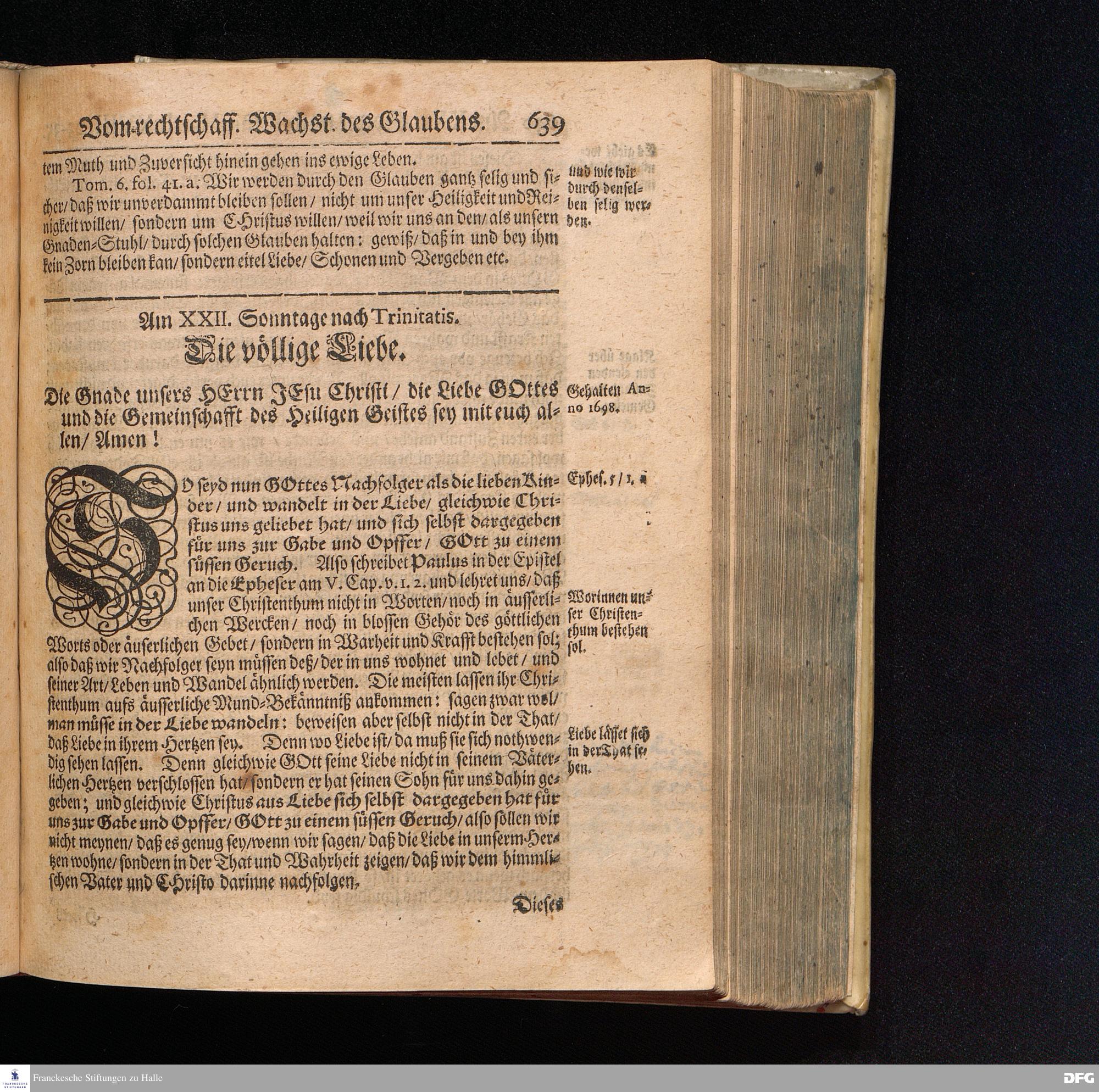 August Hermann Franckens S.Theol.Prof.und Past. Sonn= Fest= und Apostel=Tags=Predigten / Darinnen Die zum wahren Christenthum gehörige nöthigste und vornehmste Materien abgehandelt sind; Nunmehro von neuen wieder durchgesehen / und verbessert / Nebst den darzu nützlichen Registern. Die dritte Edition. HALLE / gedruckt und verlegt im Wäysenhause / MDCCIX. Mit Königl.Preuß.und Churfl.Brandenb.Privil.