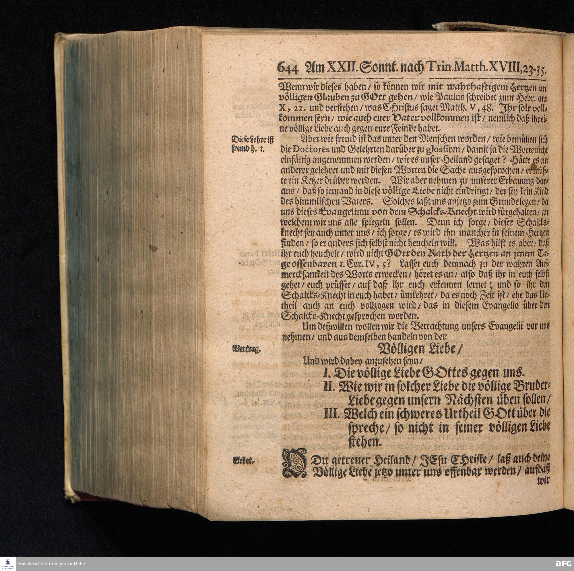 August Hermann Franckens S.Theol.Prof.und Past. Sonn= Fest= und Apostel=Tags=Predigten / Darinnen Die zum wahren Christenthum gehörige nöthigste und vornehmste Materien abgehandelt sind; Nunmehro von neuen wieder durchgesehen / und verbessert / Nebst den darzu nützlichen Registern. Die dritte Edition. HALLE / gedruckt und verlegt im Wäysenhause / MDCCIX. Mit Königl.Preuß.und Churfl.Brandenb.Privil.