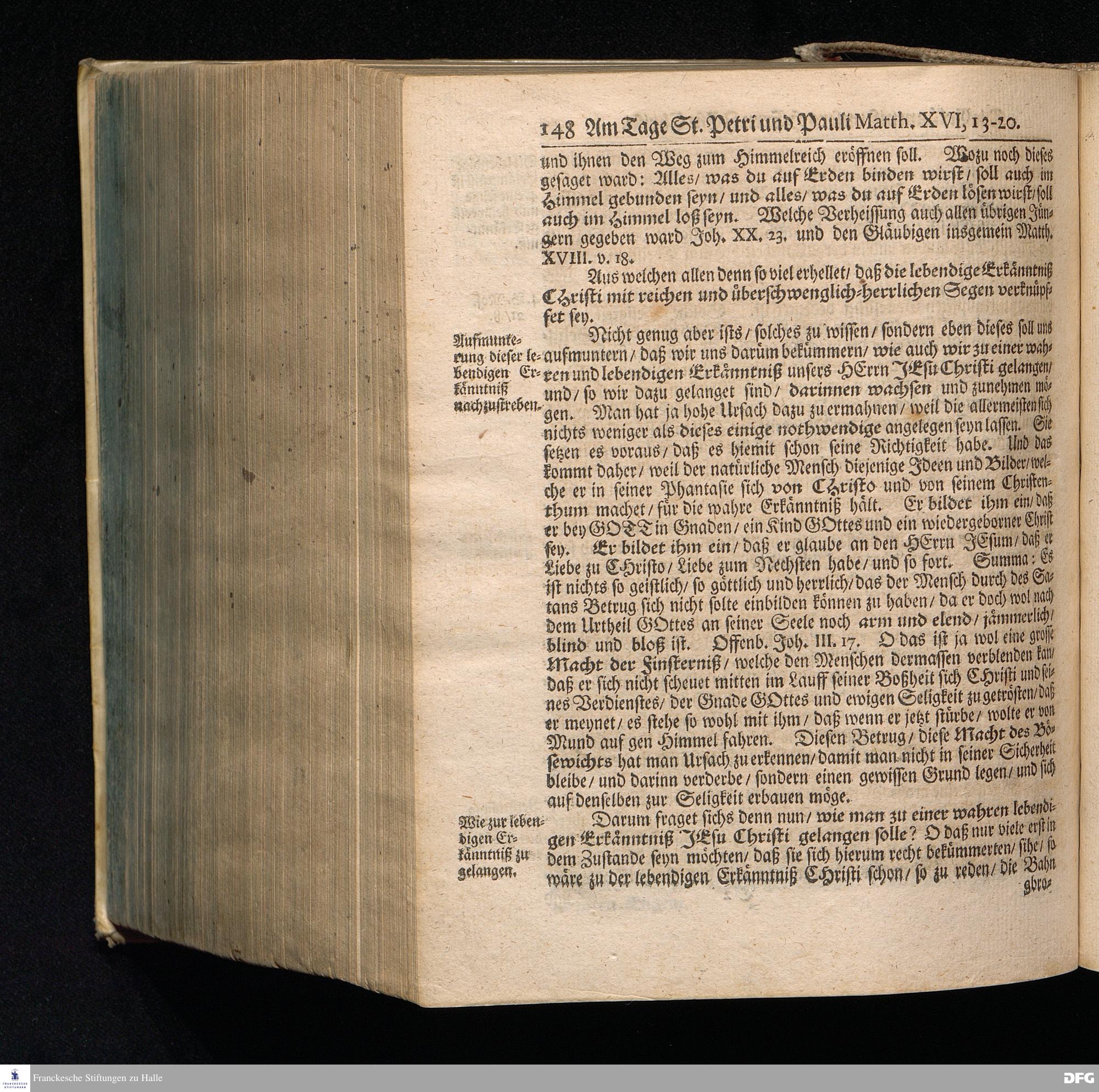 August Hermann Franckens S.Theol.Prof.und Past. Sonn= Fest= und Apostel=Tags=Predigten / Darinnen Die zum wahren Christenthum gehörige nöthigste und vornehmste Materien abgehandelt sind; Nunmehro von neuen wieder durchgesehen / und verbessert / Nebst den darzu nützlichen Registern. Die dritte Edition. HALLE / gedruckt und verlegt im Wäysenhause / MDCCIX. Mit Königl.Preuß.und Churfl.Brandenb.Privil.