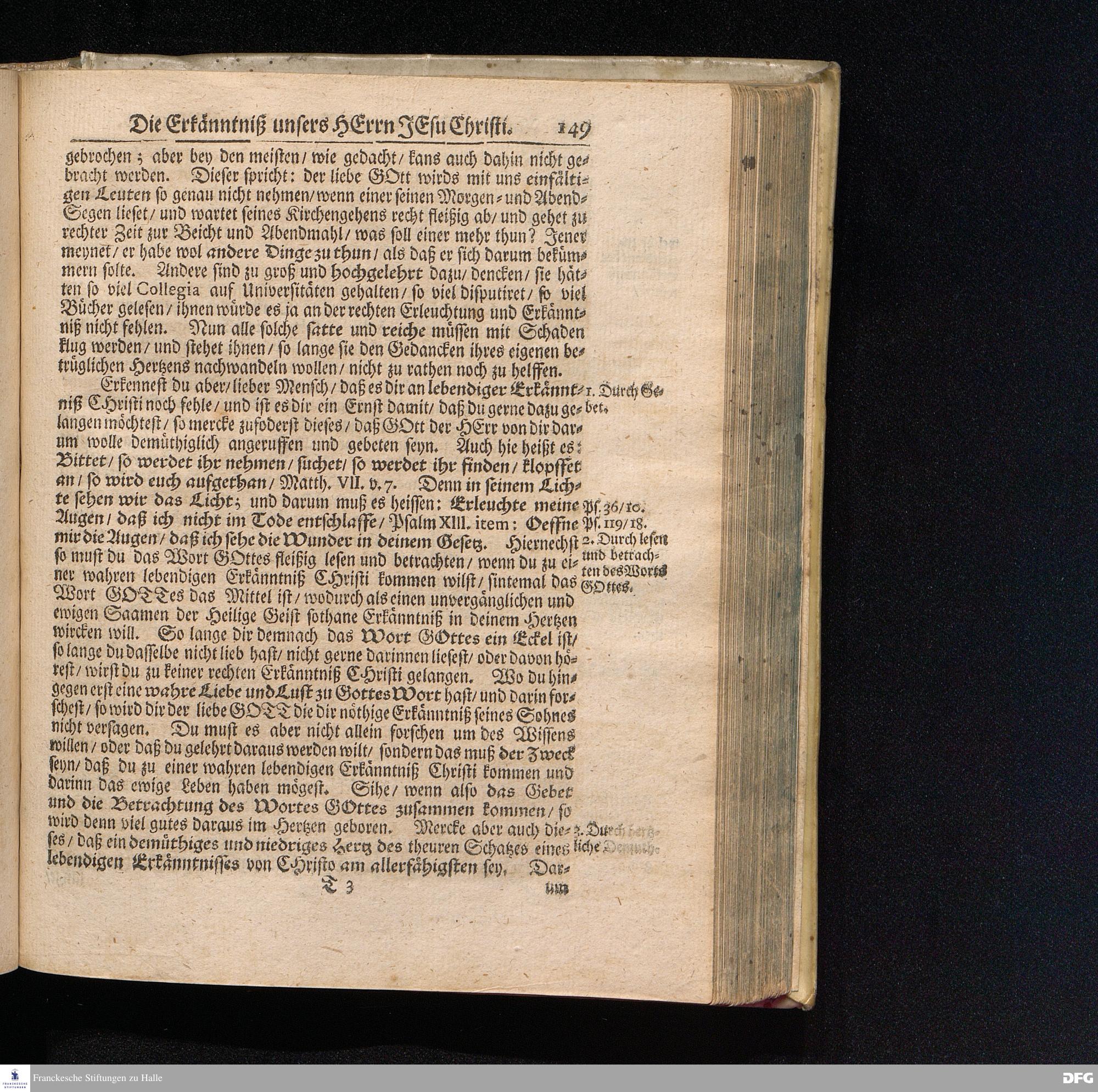 August Hermann Franckens S.Theol.Prof.und Past. Sonn= Fest= und Apostel=Tags=Predigten / Darinnen Die zum wahren Christenthum gehörige nöthigste und vornehmste Materien abgehandelt sind; Nunmehro von neuen wieder durchgesehen / und verbessert / Nebst den darzu nützlichen Registern. Die dritte Edition. HALLE / gedruckt und verlegt im Wäysenhause / MDCCIX. Mit Königl.Preuß.und Churfl.Brandenb.Privil.