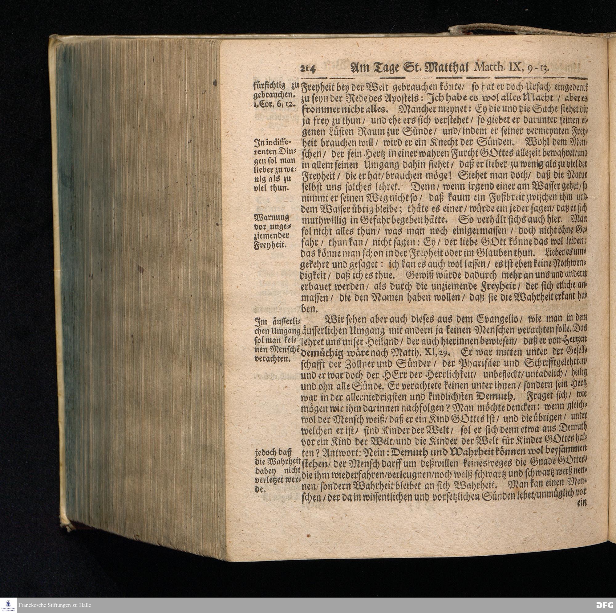 August Hermann Franckens S.Theol.Prof.und Past. Sonn= Fest= und Apostel=Tags=Predigten / Darinnen Die zum wahren Christenthum gehörige nöthigste und vornehmste Materien abgehandelt sind; Nunmehro von neuen wieder durchgesehen / und verbessert / Nebst den darzu nützlichen Registern. Die dritte Edition. HALLE / gedruckt und verlegt im Wäysenhause / MDCCIX. Mit Königl.Preuß.und Churfl.Brandenb.Privil.