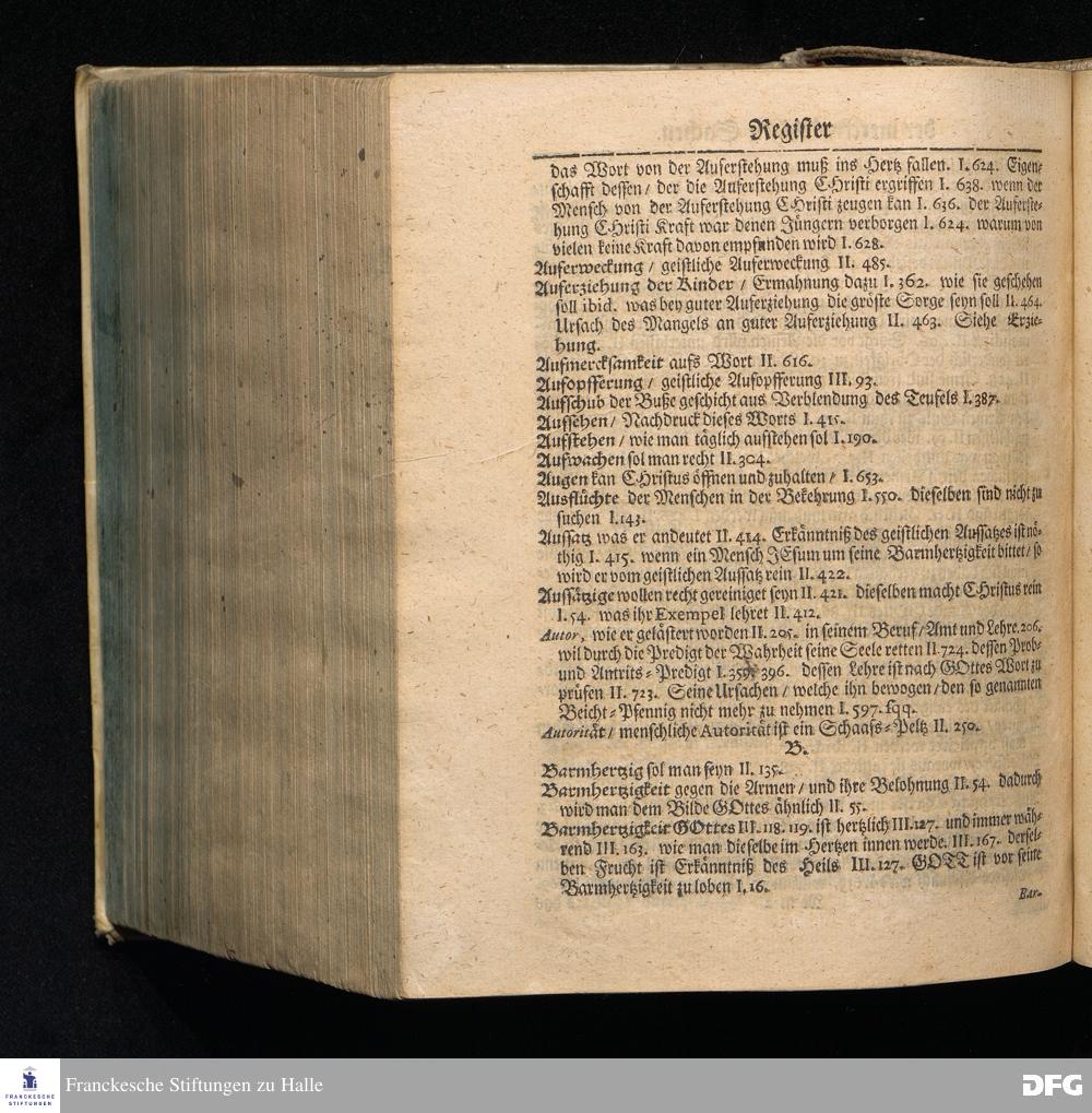 August Hermann Franckens S.Theol.Prof.und Past. Sonn= Fest= und Apostel=Tags=Predigten / Darinnen Die zum wahren Christenthum gehörige nöthigste und vornehmste Materien abgehandelt sind; Nunmehro von neuen wieder durchgesehen / und verbessert / Nebst den darzu nützlichen Registern. Die dritte Edition. HALLE / gedruckt und verlegt im Wäysenhause / MDCCIX. Mit Königl.Preuß.und Churfl.Brandenb.Privil.