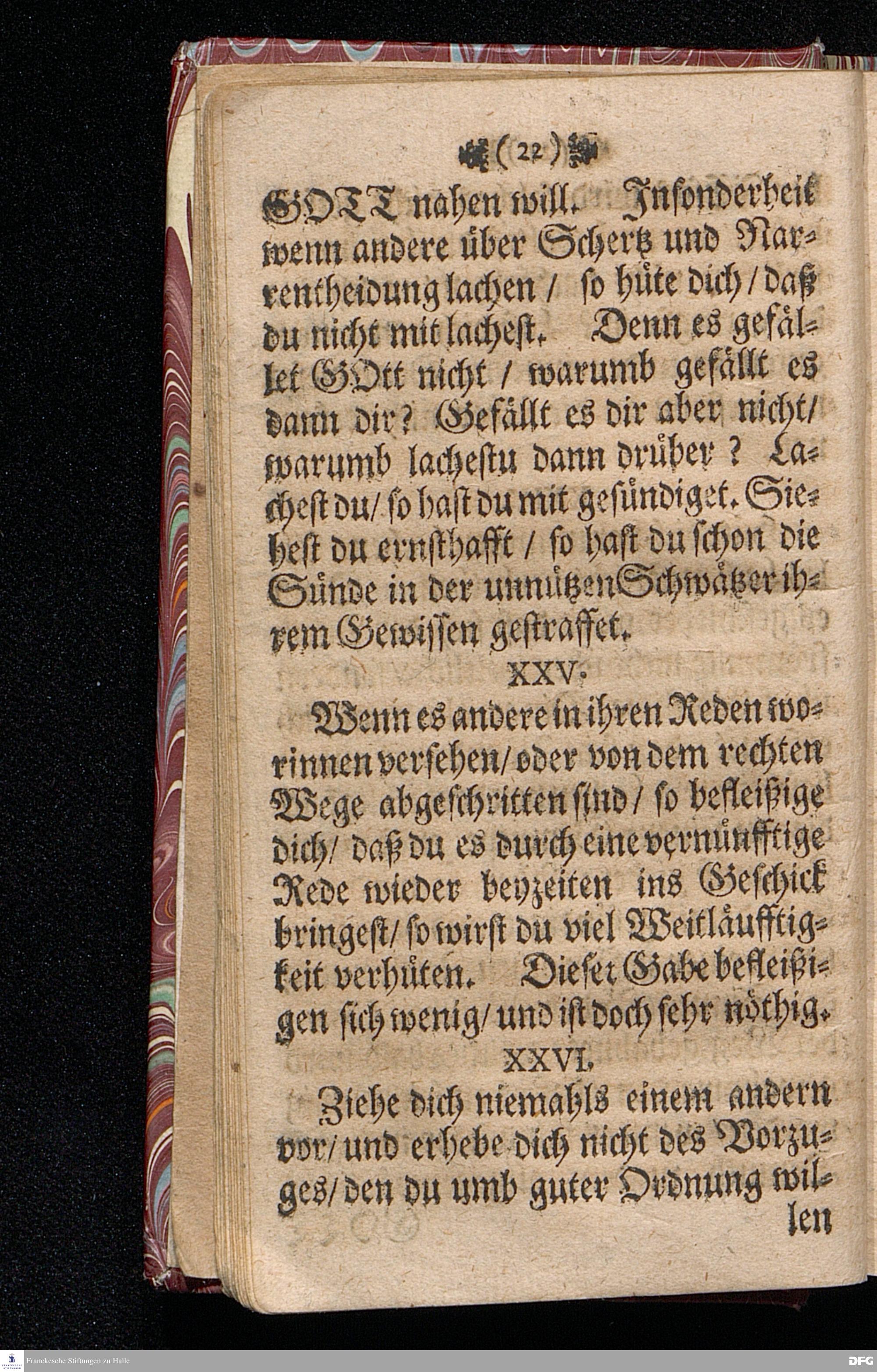 M.August Hermann Franckens Gr.& Or.Lingg.P.P.& P.Glauch. Schrifftmäßige Lebens=Reglen / Wie man so wohl bey als ausser der Gesellschafft die Liebe und Freundligkeit gegen den Nechsten / und Freudigkeit eines guten Gewissens für GOTT bewahren / und im Christenthum zunehmen soll. LEIPZIG / Bey Johann Heinichens seel.Wittib. 1695.