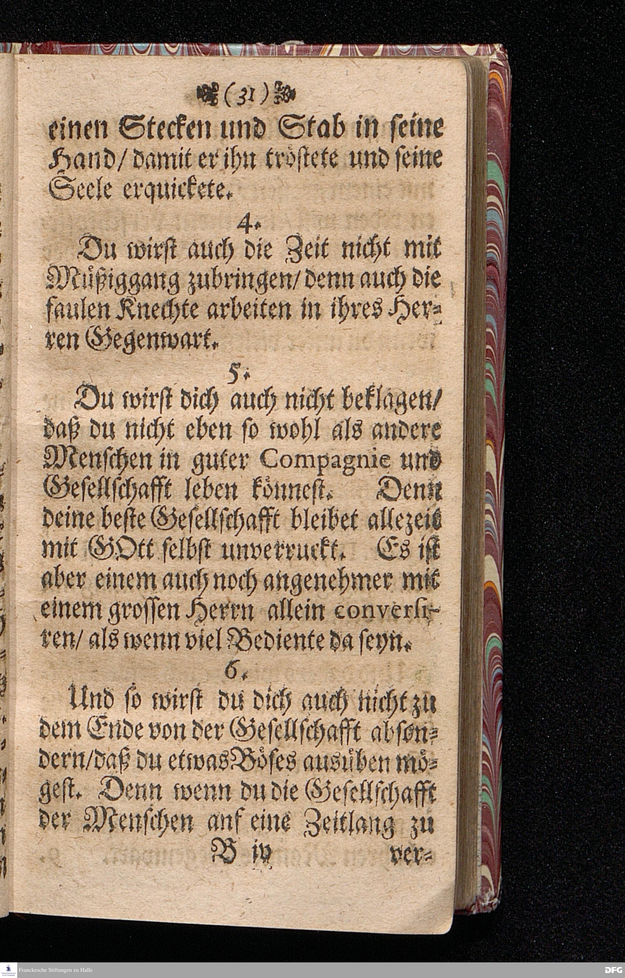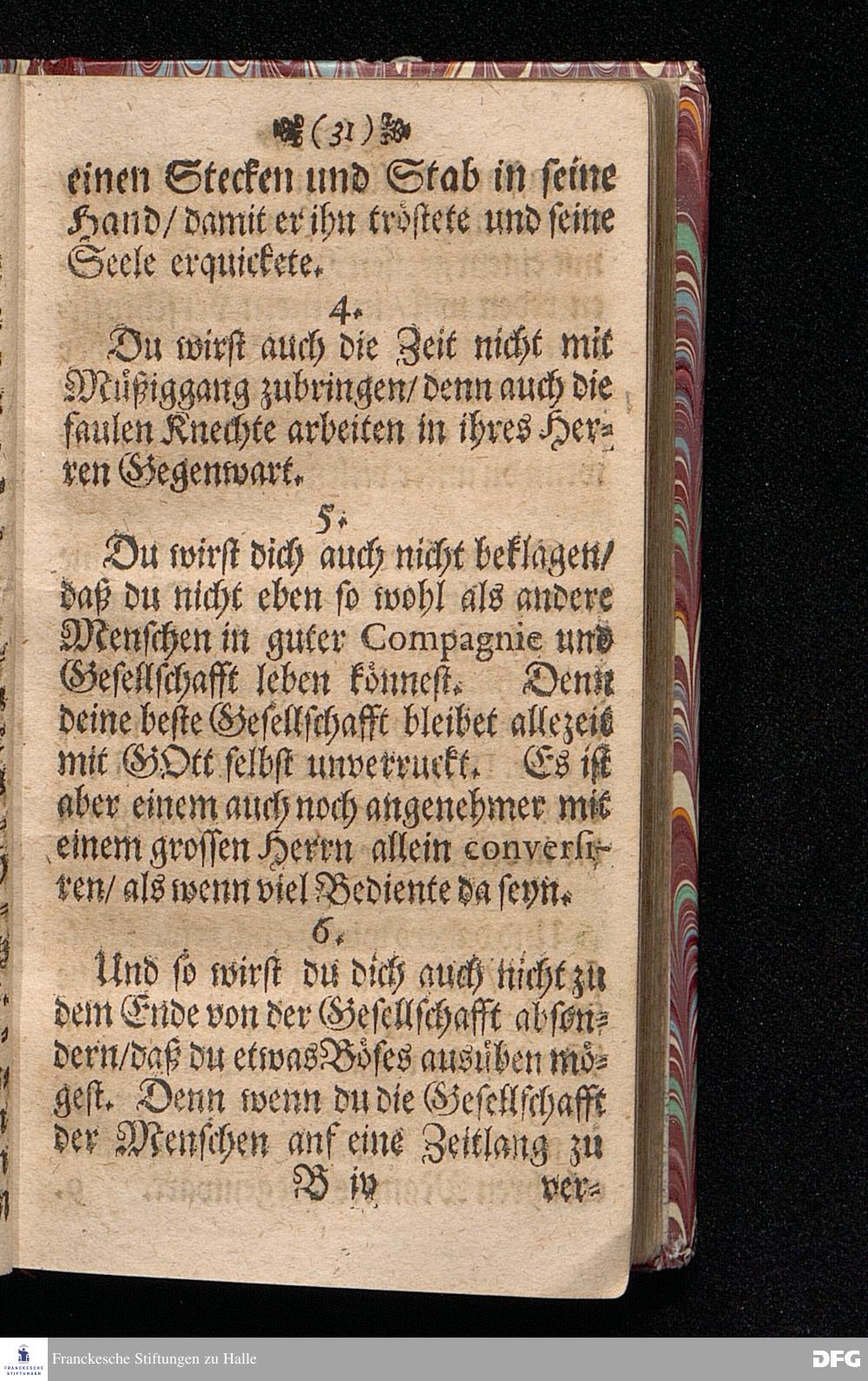 M.August Hermann Franckens Gr.& Or.Lingg.P.P.& P.Glauch. Schrifftmäßige Lebens=Reglen / Wie man so wohl bey als ausser der Gesellschafft die Liebe und Freundligkeit gegen den Nechsten / und Freudigkeit eines guten Gewissens für GOTT bewahren / und im Christenthum zunehmen soll. LEIPZIG / Bey Johann Heinichens seel.Wittib. 1695.