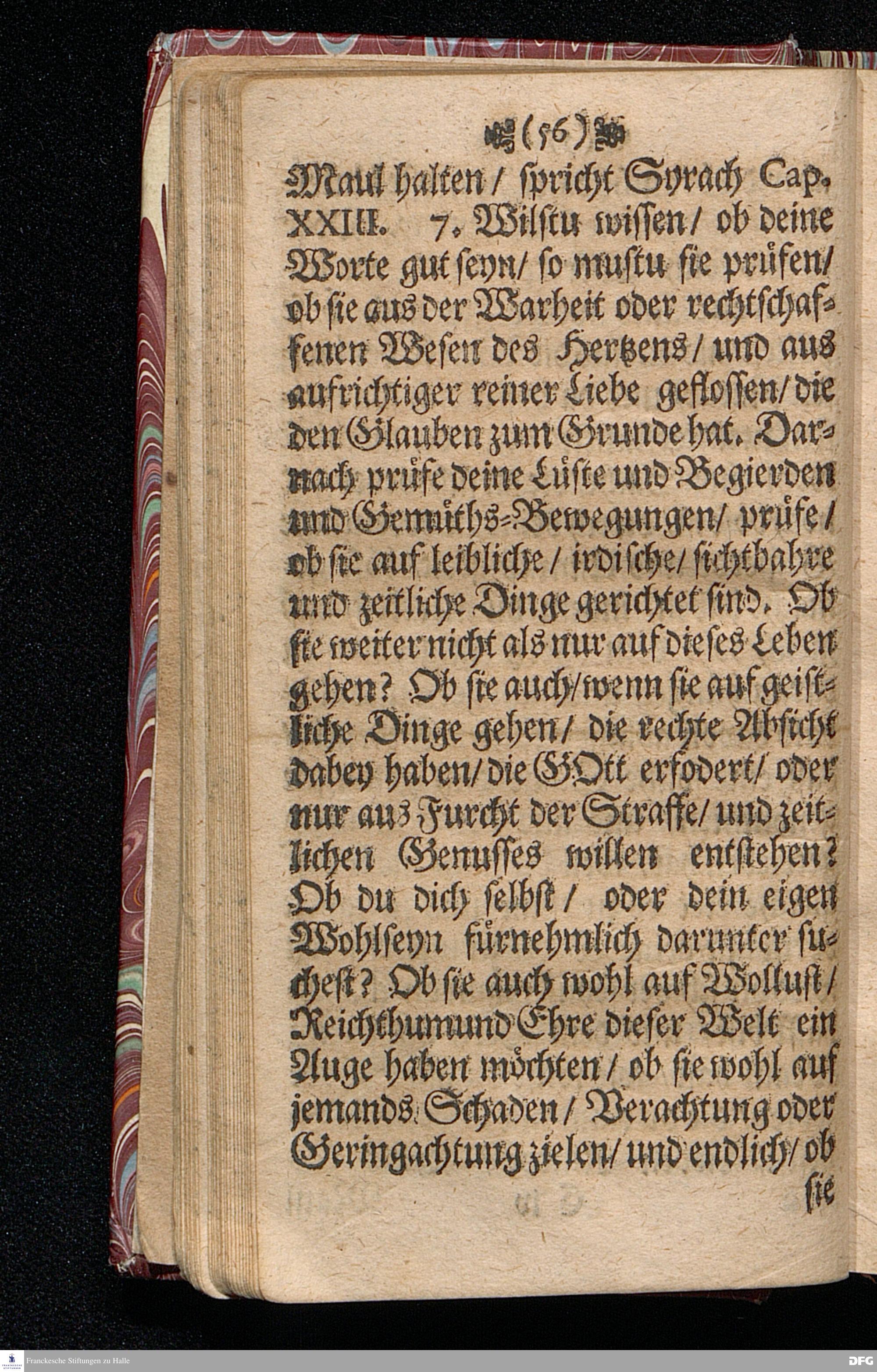 M.August Hermann Franckens Gr.& Or.Lingg.P.P.& P.Glauch. Schrifftmäßige Lebens=Reglen / Wie man so wohl bey als ausser der Gesellschafft die Liebe und Freundligkeit gegen den Nechsten / und Freudigkeit eines guten Gewissens für GOTT bewahren / und im Christenthum zunehmen soll. LEIPZIG / Bey Johann Heinichens seel.Wittib. 1695.