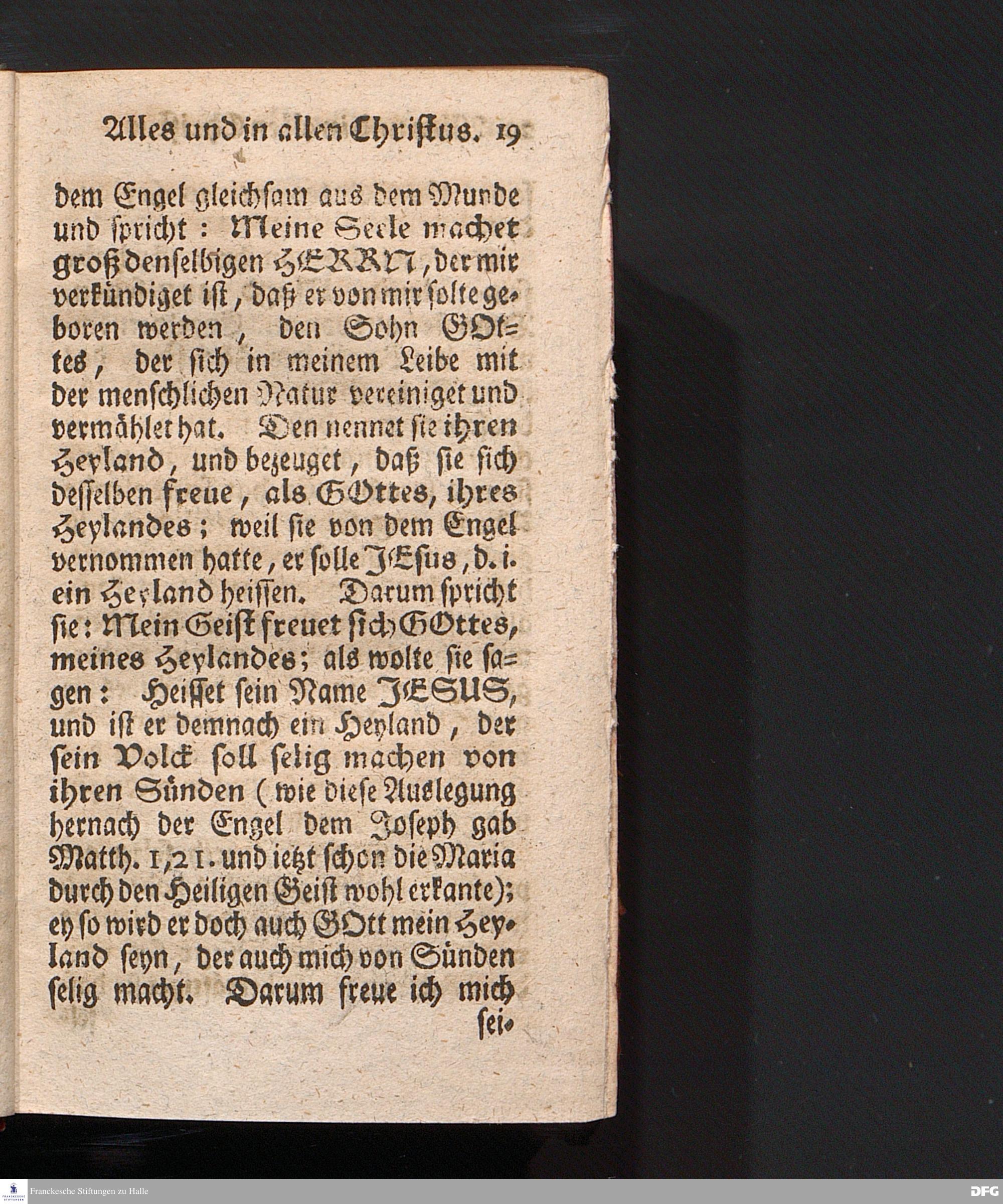 Alles und In allen Christus, Aus dem Evangelischen Text Luc.I, 39--56. Am Fest der Heimsuchung Mariä 1714. In der Stadt Cönnern im Hertzogthum Magdeburg, In öffentlicher Predigt vorgestellet von August Hermann Francken, S.Theol.Prof.Past.Vlr.& Scholarch. EDITIO III. Der Jugend in den Schulen des Wäysenhauses nach gehaltenem Examine ausgetheilet den 25.Iulii MDCCXXII. HALLE, In Verlegung des Wäysenhauses, MDCCXXXXII.