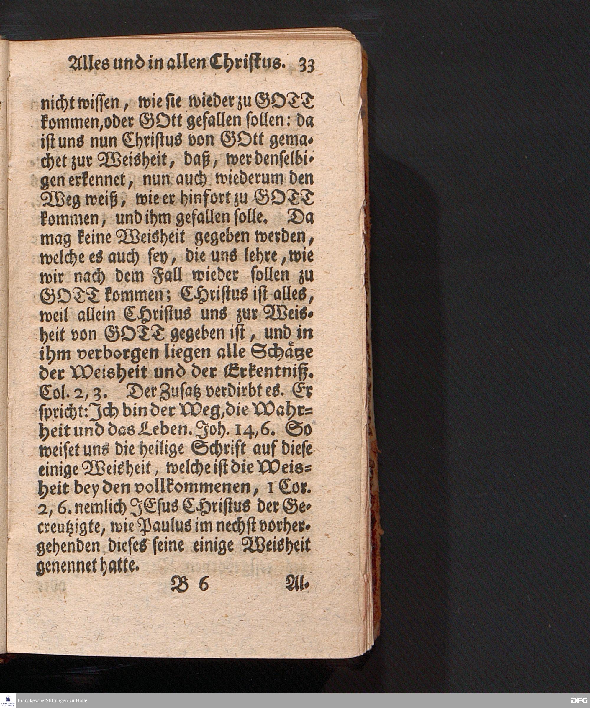 Alles und In allen Christus, Aus dem Evangelischen Text Luc.I, 39--56. Am Fest der Heimsuchung Mariä 1714. In der Stadt Cönnern im Hertzogthum Magdeburg, In öffentlicher Predigt vorgestellet von August Hermann Francken, S.Theol.Prof.Past.Vlr.& Scholarch. EDITIO III. Der Jugend in den Schulen des Wäysenhauses nach gehaltenem Examine ausgetheilet den 25.Iulii MDCCXXII. HALLE, In Verlegung des Wäysenhauses, MDCCXXXXII.