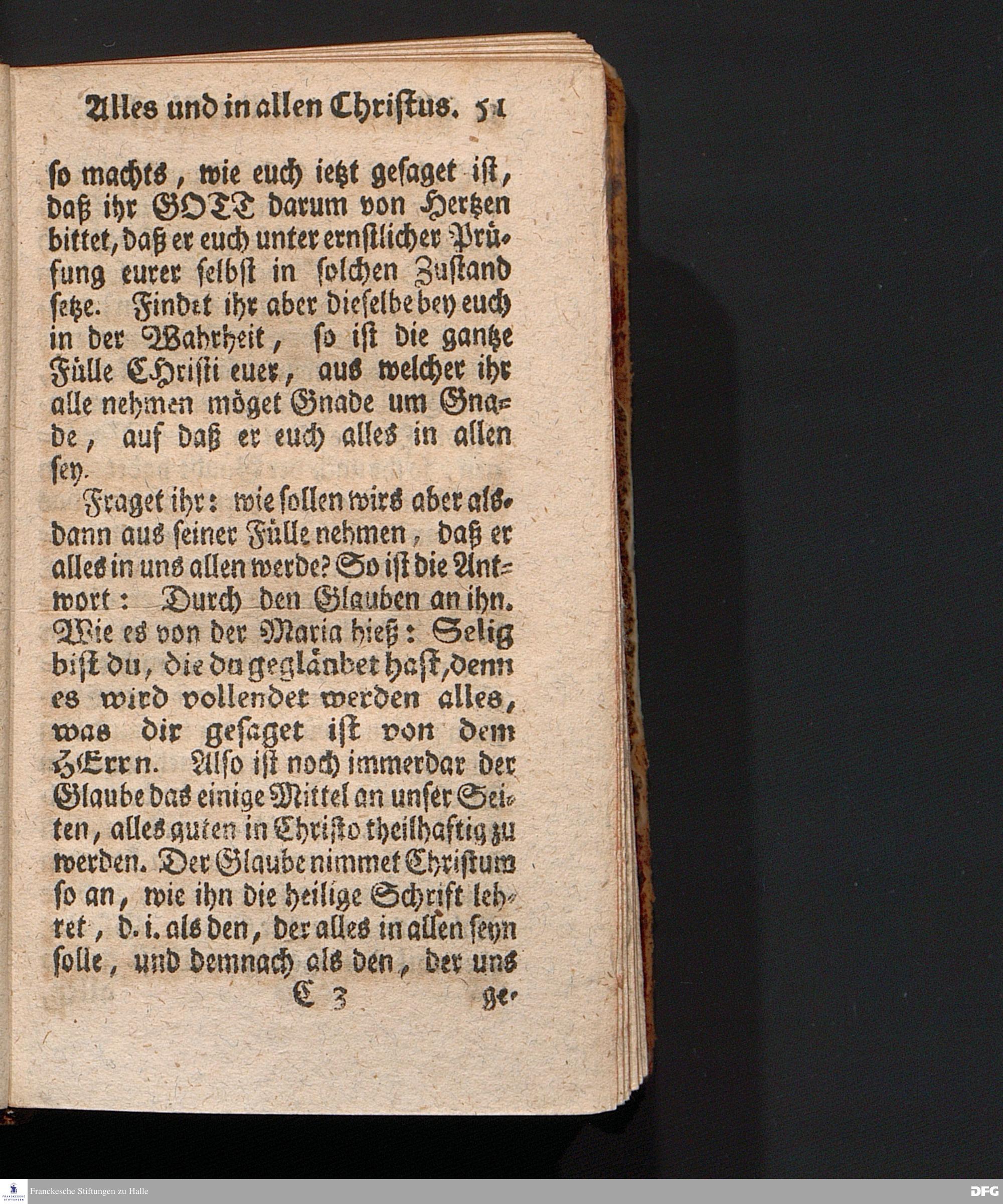 Alles und In allen Christus, Aus dem Evangelischen Text Luc.I, 39--56. Am Fest der Heimsuchung Mariä 1714. In der Stadt Cönnern im Hertzogthum Magdeburg, In öffentlicher Predigt vorgestellet von August Hermann Francken, S.Theol.Prof.Past.Vlr.& Scholarch. EDITIO III. Der Jugend in den Schulen des Wäysenhauses nach gehaltenem Examine ausgetheilet den 25.Iulii MDCCXXII. HALLE, In Verlegung des Wäysenhauses, MDCCXXXXII.