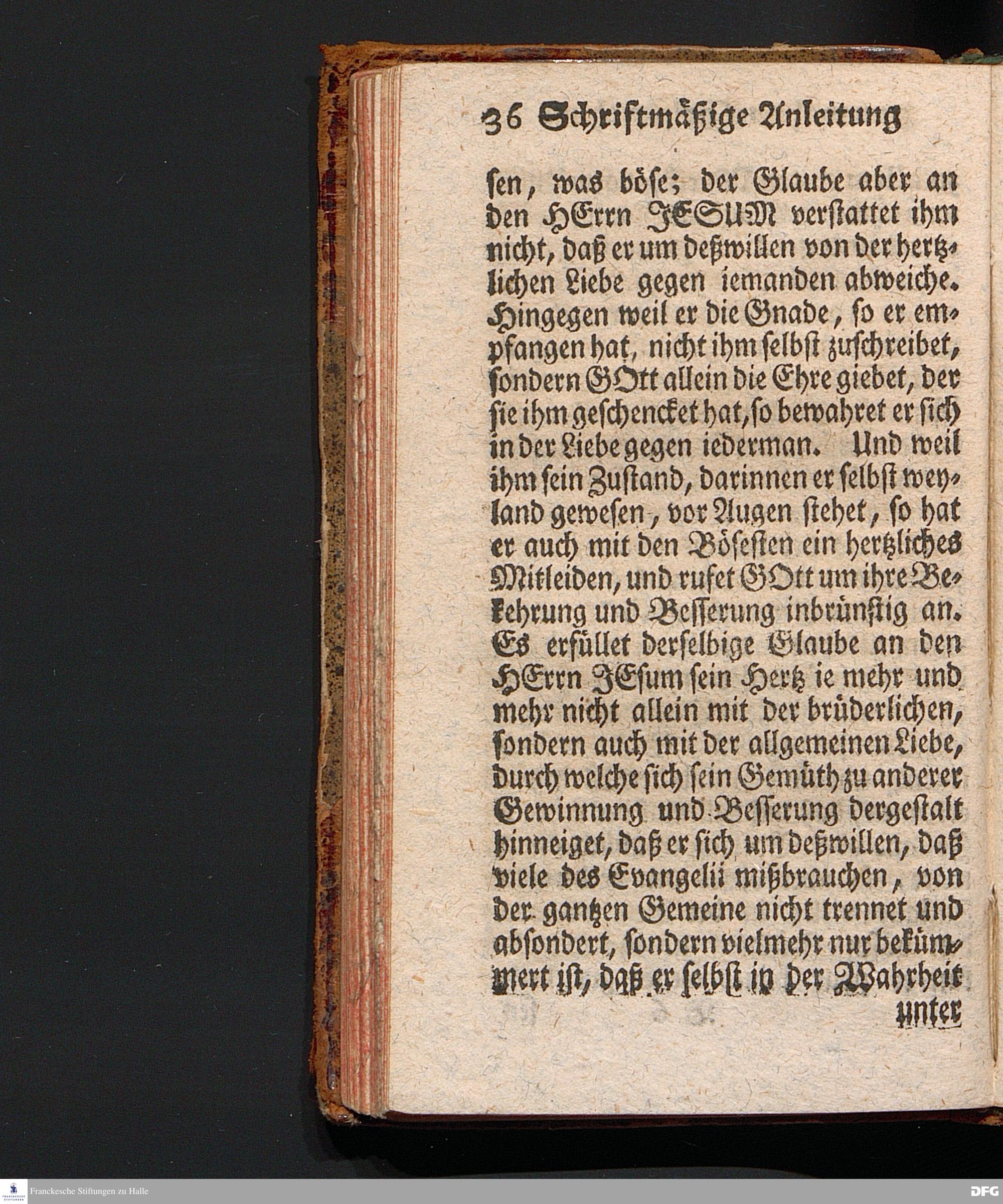 Die Lehre Vom Anfang Christliches Lebens, Bestehend in vier Theilen: I. In einer gründlichen Anleitung zu wahrer Busse und Glauben an GOTT. II. In einem einfältigen Unterricht, wie man die H.Schrift zu seiner wahren Erbauung lesen solle. III. In einer Schriftmäßigen Anweisung, recht und GOTT gefällig zu beten. IV. In einer kurtzen Prüfung, ob man den wahren lebendigen Glauben an CHristum habe oder nicht. Die XVI.Auflage. HALLE, In Verlegung des Wäysenhauses, 1740.