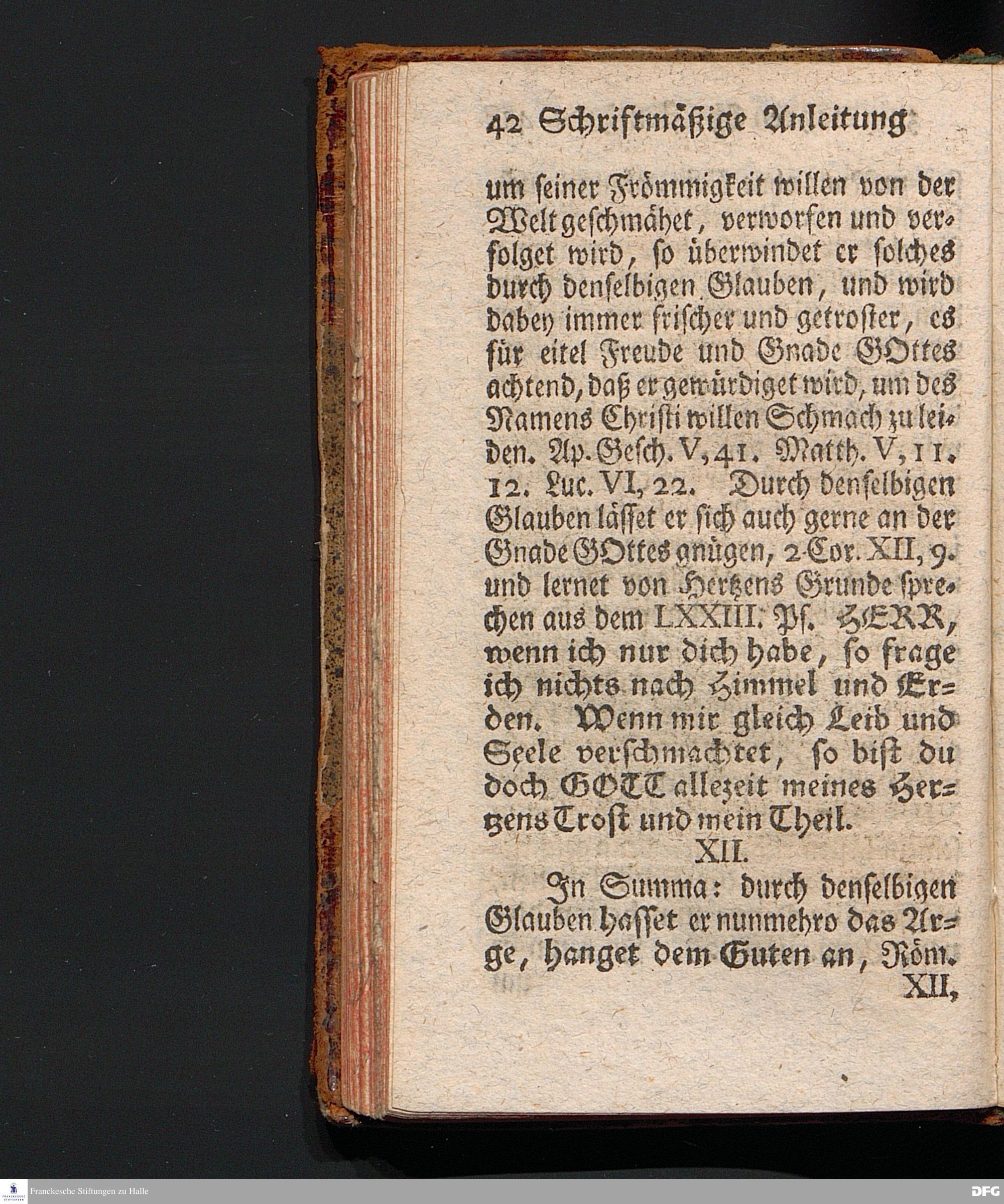 Die Lehre Vom Anfang Christliches Lebens, Bestehend in vier Theilen: I. In einer gründlichen Anleitung zu wahrer Busse und Glauben an GOTT. II. In einem einfältigen Unterricht, wie man die H.Schrift zu seiner wahren Erbauung lesen solle. III. In einer Schriftmäßigen Anweisung, recht und GOTT gefällig zu beten. IV. In einer kurtzen Prüfung, ob man den wahren lebendigen Glauben an CHristum habe oder nicht. Die XVI.Auflage. HALLE, In Verlegung des Wäysenhauses, 1740.