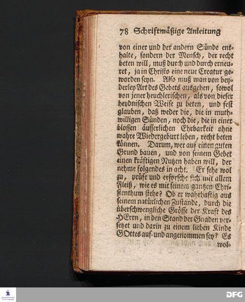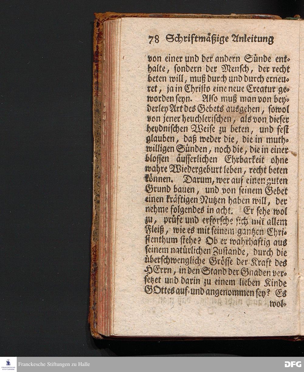 Die Lehre Vom Anfang Christliches Lebens, Bestehend in vier Theilen: I. In einer gründlichen Anleitung zu wahrer Busse und Glauben an GOTT. II. In einem einfältigen Unterricht, wie man die H.Schrift zu seiner wahren Erbauung lesen solle. III. In einer Schriftmäßigen Anweisung, recht und GOTT gefällig zu beten. IV. In einer kurtzen Prüfung, ob man den wahren lebendigen Glauben an CHristum habe oder nicht. Die XVI.Auflage. HALLE, In Verlegung des Wäysenhauses, 1740.