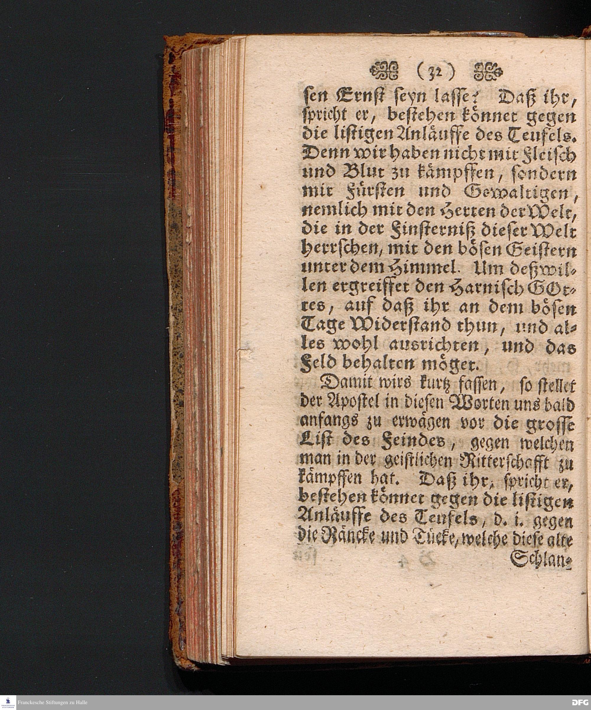 Die Apostolische Aufmunterung Zur Ausübung Der guten Ritterschafft / In einer Predigt Uber die Epistel Ephes.VI, 10-18. Am XXI.Sonntag nach Trinit. 1703. In der Schul=Kirche zu Halle vorgestellet Von August Hermann Francken / SS.Theol.Prof.Ord.Past.Vlr. & Schol. Andere Auflage. HALLE, Gedruckt im Wäysen=Hause Anno 1723.