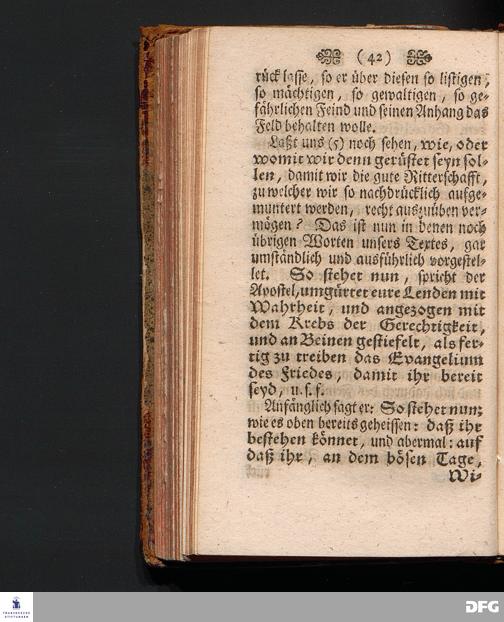 Die Apostolische Aufmunterung Zur Ausübung Der guten Ritterschafft / In einer Predigt Uber die Epistel Ephes.VI, 10-18. Am XXI.Sonntag nach Trinit. 1703. In der Schul=Kirche zu Halle vorgestellet Von August Hermann Francken / SS.Theol.Prof.Ord.Past.Vlr. & Schol. Andere Auflage. HALLE, Gedruckt im Wäysen=Hause Anno 1723.