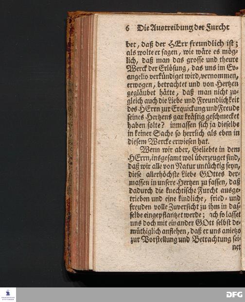 Die Austreibung Der Furcht durch die völlige Liebe, Am I.Sonntag nach Trinitatis 1719. In einer Uber die ordentliche Epistolische Lection aus I Joh.IV, 16-21. In der Universitäts=Kirche zu Leipzig auf geschehenen Antrag gehaltenen Predigt vorgestellet, und auf Begehren zum Druck gegeben, von August Hermann Francken, S.Theol.Prof.& Past.zu St.Ulrich, und des Gymnasii Scholarcha. Dritte Auflage. HALLE, in Verlegung des Wäysenhauses, 1743.