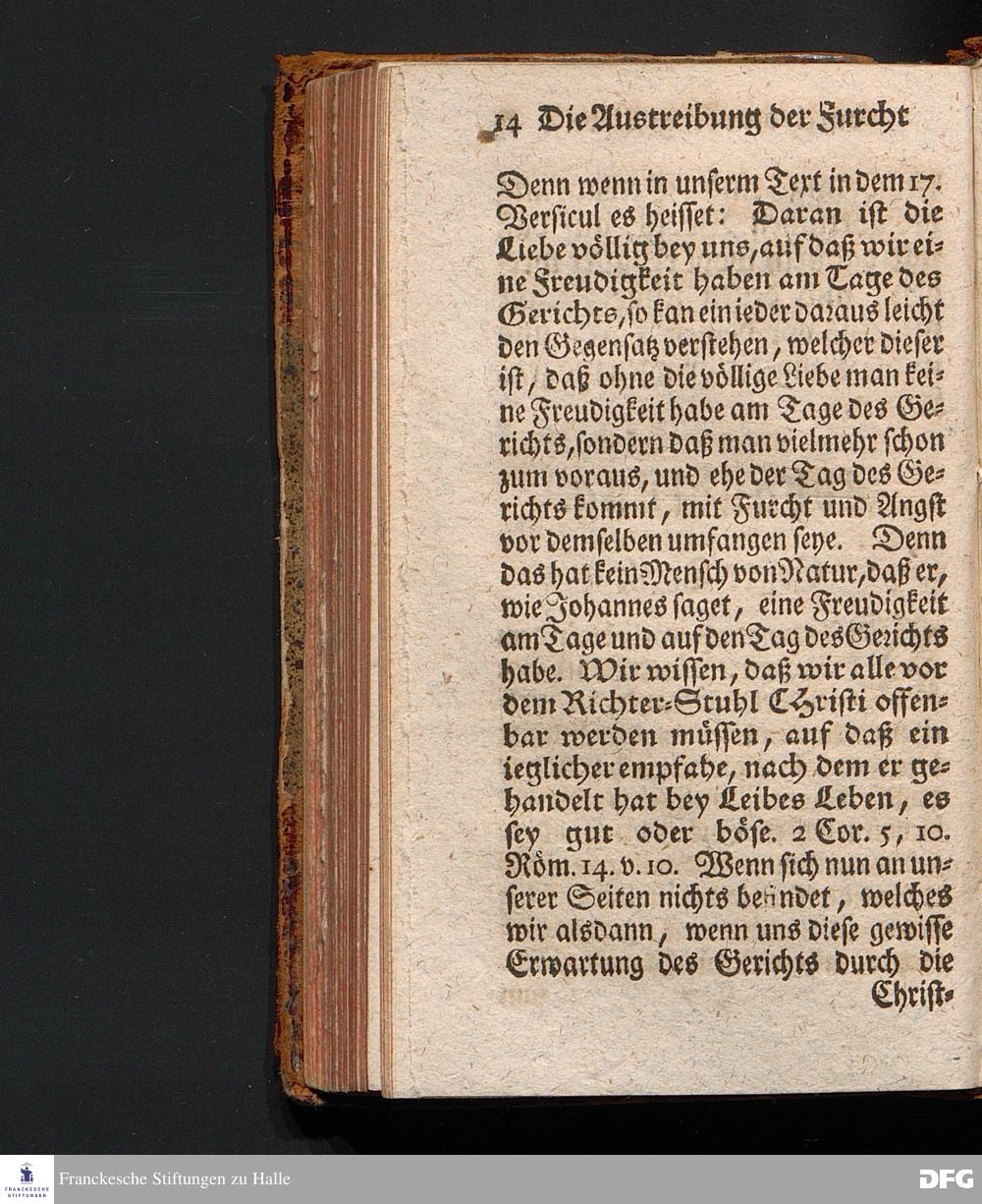 Die Austreibung Der Furcht durch die völlige Liebe, Am I.Sonntag nach Trinitatis 1719. In einer Uber die ordentliche Epistolische Lection aus I Joh.IV, 16-21. In der Universitäts=Kirche zu Leipzig auf geschehenen Antrag gehaltenen Predigt vorgestellet, und auf Begehren zum Druck gegeben, von August Hermann Francken, S.Theol.Prof.& Past.zu St.Ulrich, und des Gymnasii Scholarcha. Dritte Auflage. HALLE, in Verlegung des Wäysenhauses, 1743.