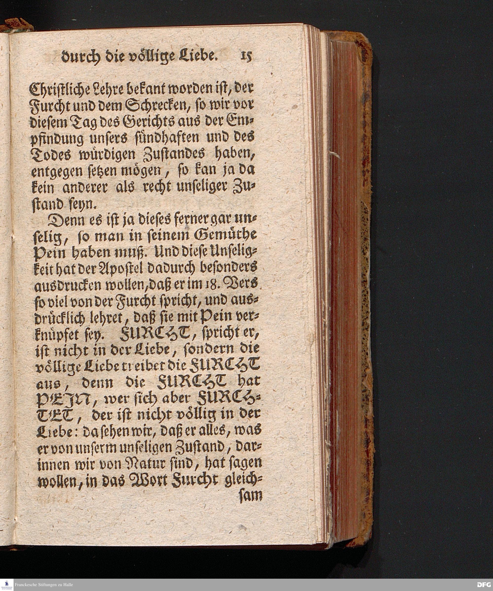 Die Austreibung Der Furcht durch die völlige Liebe, Am I.Sonntag nach Trinitatis 1719. In einer Uber die ordentliche Epistolische Lection aus I Joh.IV, 16-21. In der Universitäts=Kirche zu Leipzig auf geschehenen Antrag gehaltenen Predigt vorgestellet, und auf Begehren zum Druck gegeben, von August Hermann Francken, S.Theol.Prof.& Past.zu St.Ulrich, und des Gymnasii Scholarcha. Dritte Auflage. HALLE, in Verlegung des Wäysenhauses, 1743.