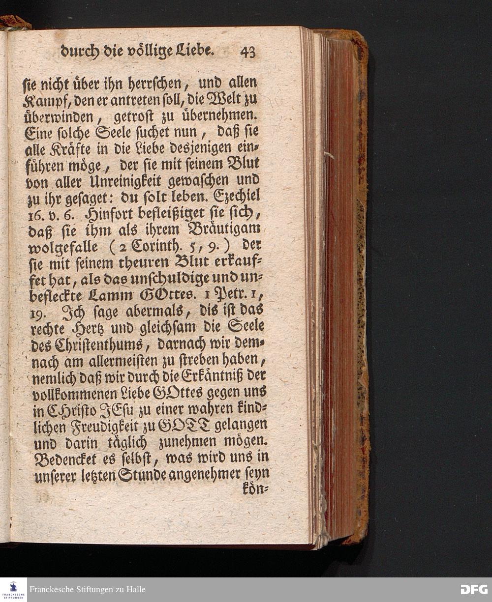 Die Austreibung Der Furcht durch die völlige Liebe, Am I.Sonntag nach Trinitatis 1719. In einer Uber die ordentliche Epistolische Lection aus I Joh.IV, 16-21. In der Universitäts=Kirche zu Leipzig auf geschehenen Antrag gehaltenen Predigt vorgestellet, und auf Begehren zum Druck gegeben, von August Hermann Francken, S.Theol.Prof.& Past.zu St.Ulrich, und des Gymnasii Scholarcha. Dritte Auflage. HALLE, in Verlegung des Wäysenhauses, 1743.