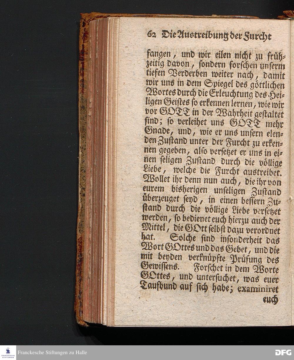 Die Austreibung Der Furcht durch die völlige Liebe, Am I.Sonntag nach Trinitatis 1719. In einer Uber die ordentliche Epistolische Lection aus I Joh.IV, 16-21. In der Universitäts=Kirche zu Leipzig auf geschehenen Antrag gehaltenen Predigt vorgestellet, und auf Begehren zum Druck gegeben, von August Hermann Francken, S.Theol.Prof.& Past.zu St.Ulrich, und des Gymnasii Scholarcha. Dritte Auflage. HALLE, in Verlegung des Wäysenhauses, 1743.