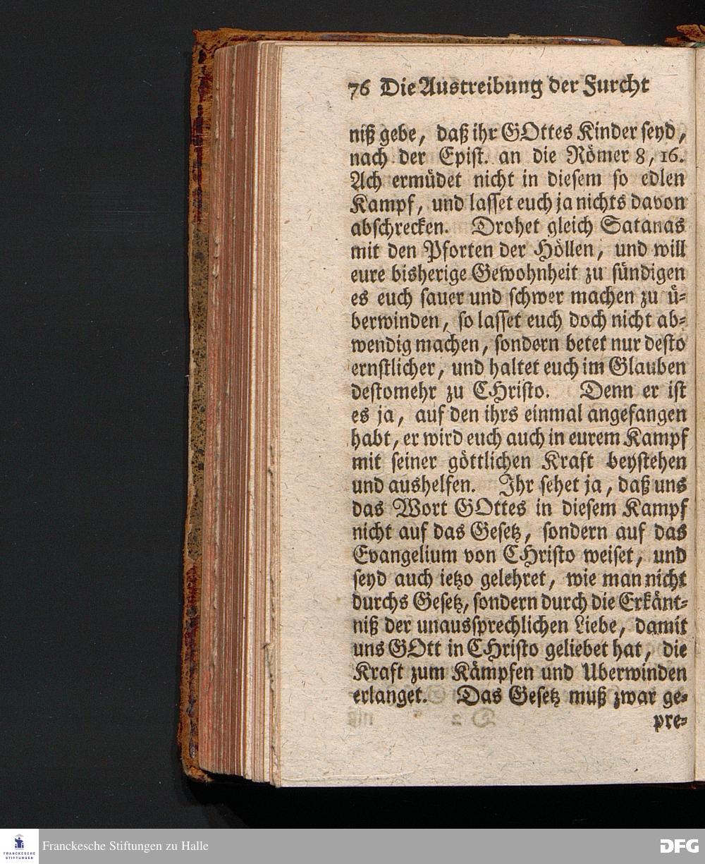 Die Austreibung Der Furcht durch die völlige Liebe, Am I.Sonntag nach Trinitatis 1719. In einer Uber die ordentliche Epistolische Lection aus I Joh.IV, 16-21. In der Universitäts=Kirche zu Leipzig auf geschehenen Antrag gehaltenen Predigt vorgestellet, und auf Begehren zum Druck gegeben, von August Hermann Francken, S.Theol.Prof.& Past.zu St.Ulrich, und des Gymnasii Scholarcha. Dritte Auflage. HALLE, in Verlegung des Wäysenhauses, 1743.
