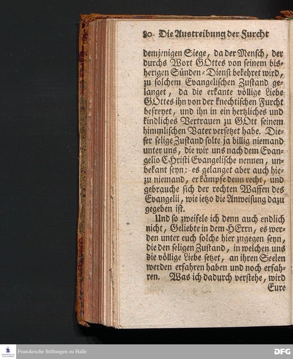 Die Austreibung Der Furcht durch die völlige Liebe, Am I.Sonntag nach Trinitatis 1719. In einer Uber die ordentliche Epistolische Lection aus I Joh.IV, 16-21. In der Universitäts=Kirche zu Leipzig auf geschehenen Antrag gehaltenen Predigt vorgestellet, und auf Begehren zum Druck gegeben, von August Hermann Francken, S.Theol.Prof.& Past.zu St.Ulrich, und des Gymnasii Scholarcha. Dritte Auflage. HALLE, in Verlegung des Wäysenhauses, 1743.