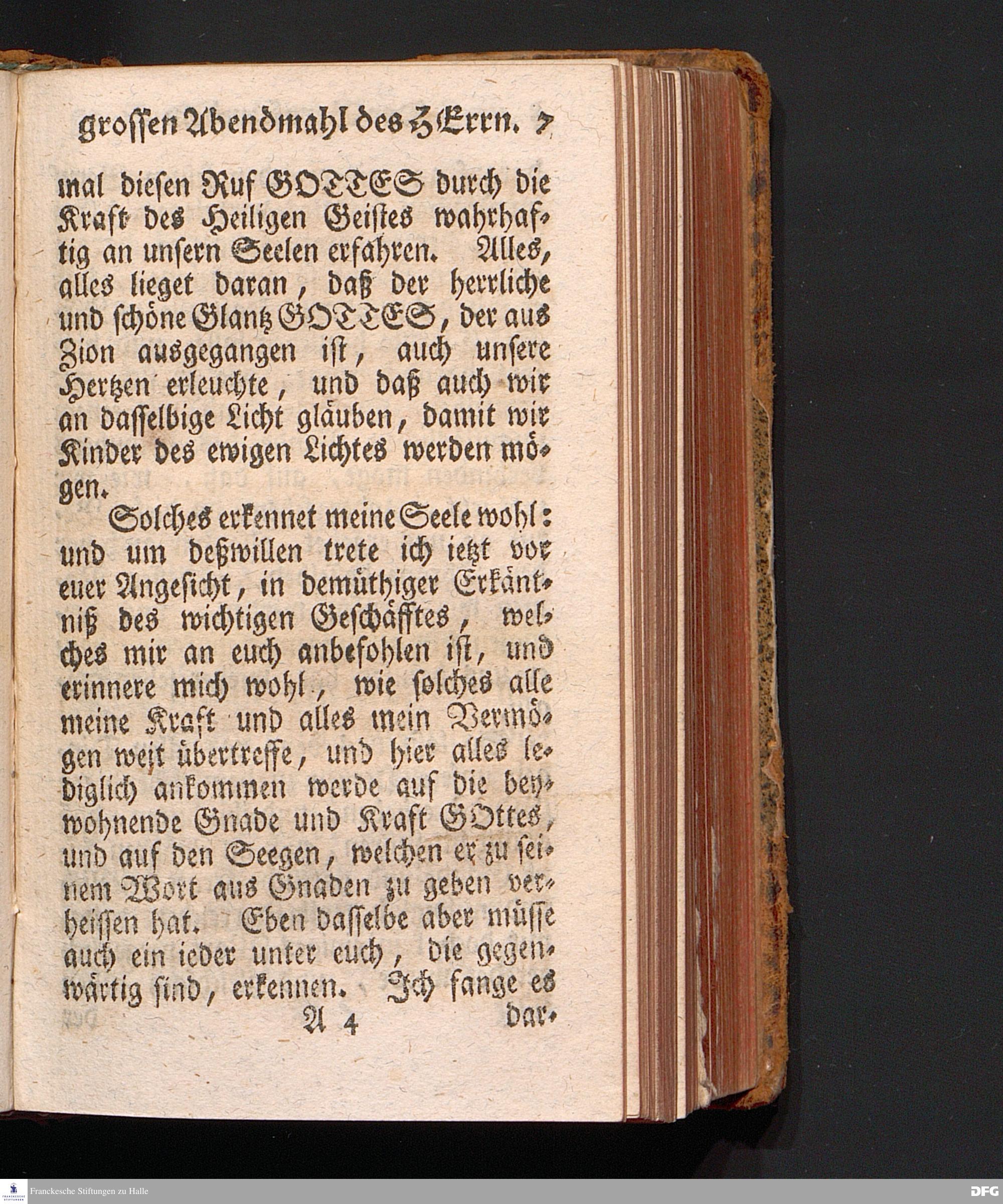 Der Beruf Zu dem Grossen Abendmahl des HERRN, Am 2.Sonntage nach Trinitatis 1720. In einer über den ordentlichen Evangel.Text Luc.XIV, 16--24. In der Kirche zu St.Nicolai der Königl.Residenz-Stadt Berlin auf Erforderung gehaltenen Predigt vorgestellet, und nach Begehren zum Druck gegeben von August Hermann Francken, S.Theol.Prof.Past.zu St.Ulrich, und des Gymnasii Scholarcha. Dritte Auflage. Der Schul=Jugend in den Glauchischen Anstalten nach gehaltenem Examine ausgetheilet den 20ten Julii 1720. HALLE, In Verlegung des Wäysenhauses. 1743.