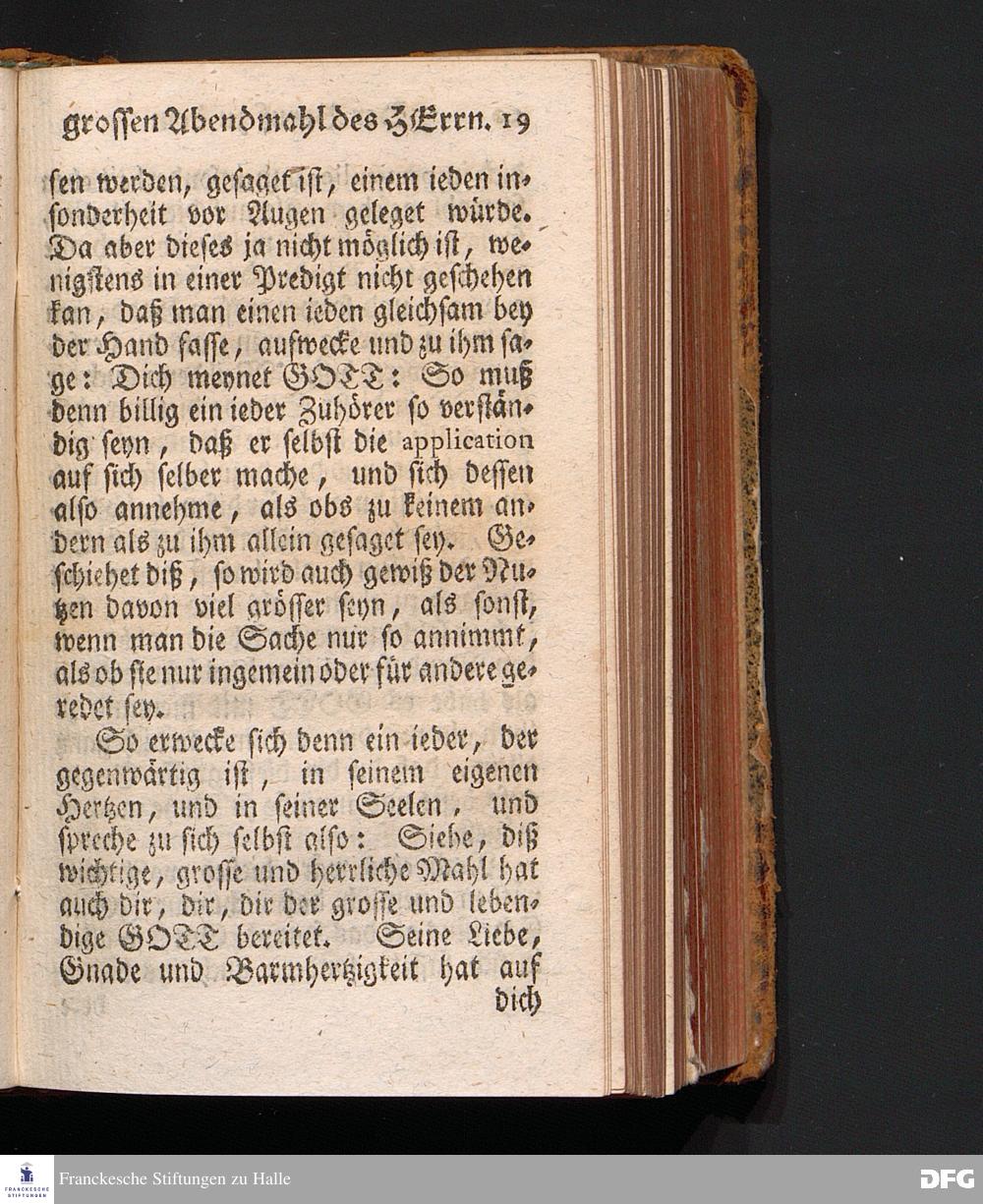 Der Beruf Zu dem Grossen Abendmahl des HERRN, Am 2.Sonntage nach Trinitatis 1720. In einer über den ordentlichen Evangel.Text Luc.XIV, 16--24. In der Kirche zu St.Nicolai der Königl.Residenz-Stadt Berlin auf Erforderung gehaltenen Predigt vorgestellet, und nach Begehren zum Druck gegeben von August Hermann Francken, S.Theol.Prof.Past.zu St.Ulrich, und des Gymnasii Scholarcha. Dritte Auflage. Der Schul=Jugend in den Glauchischen Anstalten nach gehaltenem Examine ausgetheilet den 20ten Julii 1720. HALLE, In Verlegung des Wäysenhauses. 1743.