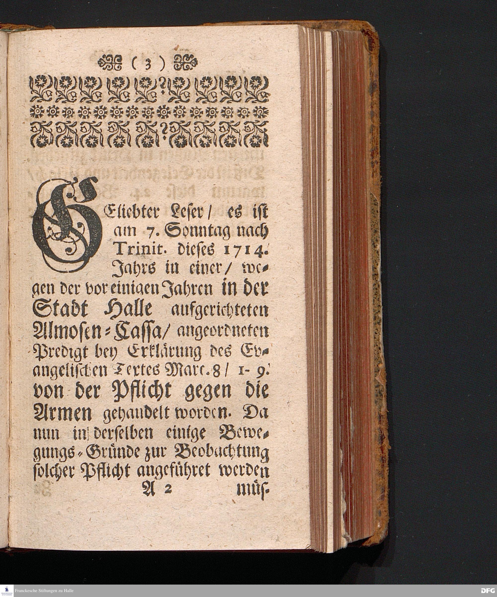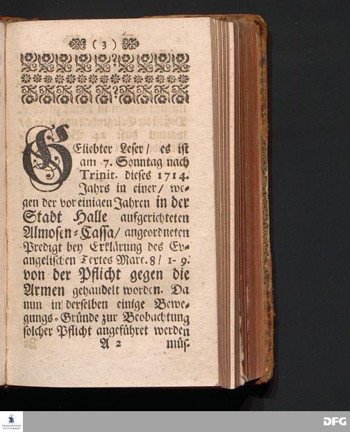 XXIV.Bewegungs=Gründe Zu Beobachtung der Pflicht gegen die Armen / Bey Gelegenheit einer angeordneten Armen=Predigt vorgestellet von August Hermann Francken / S.Theol.Prof.Ord.& Past. Andere Auflage. HALLE, Gedruckt im Wäysen=Hause. 1724.