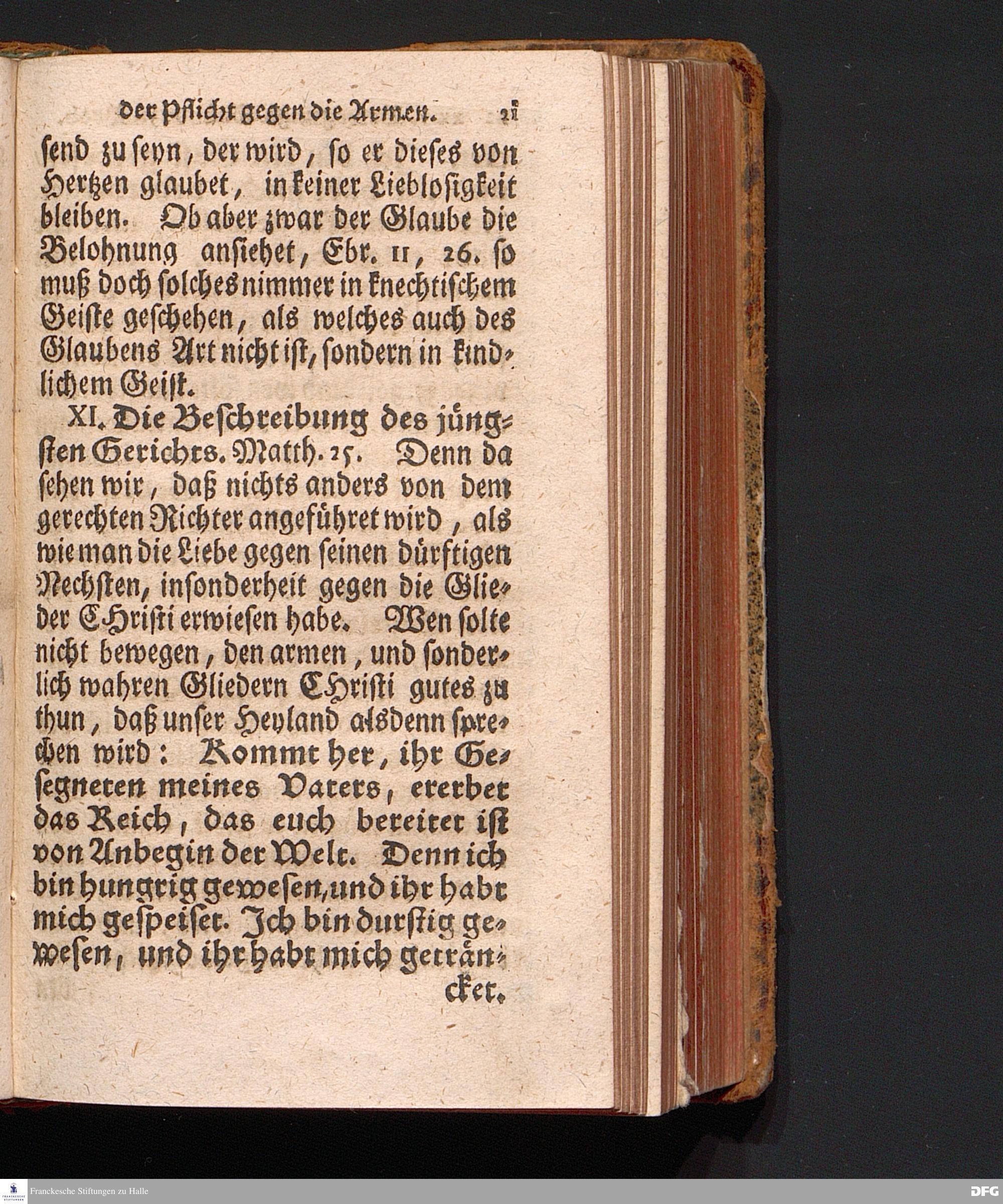 XXIV.Bewegungs=Gründe Zu Beobachtung der Pflicht gegen die Armen / Bey Gelegenheit einer angeordneten Armen=Predigt vorgestellet von August Hermann Francken / S.Theol.Prof.Ord.& Past. Andere Auflage. HALLE, Gedruckt im Wäysen=Hause. 1724.