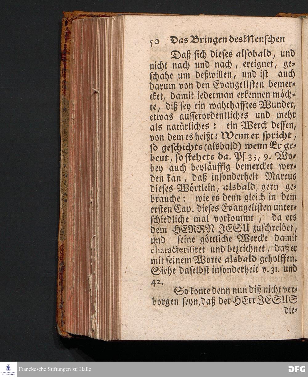 Das Bringen Des Menschen Zu dem HErrn JEsu, Am XII.Sonntage nach Trinit.1719. In einer Uber den ordentlichen Evangelischen Text Marc.VII, 31--37. In der Kirche zu St.Nicolai der Königl. Residenz-Stadt Berlin auf geschehenen Antrag gehaltener Predigt. vorgestellet, und nach Begehren zum Druck gegeben, von August Hermann Francken / S.Theol.Prof.& Past.zu St.Ulrich, und des Gymnasii Scholarcha. Andere Auflage. HALLE, in Verlegung des Wäysen=Hauses 1723.