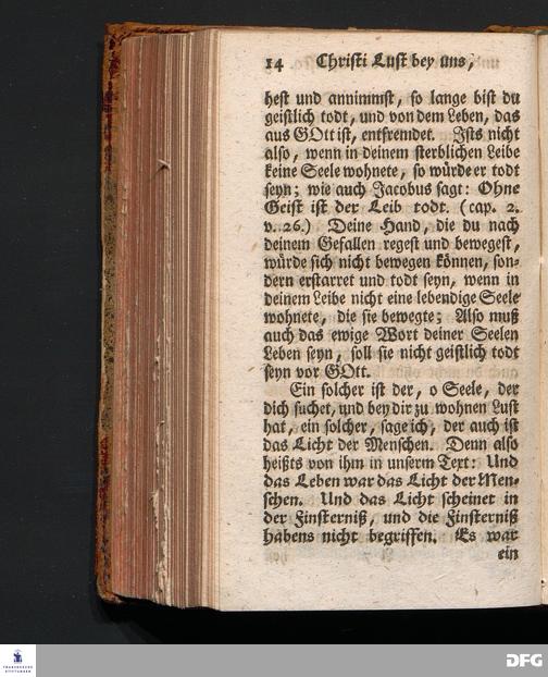 Christi Lust bey Uns, und Unsere Lust bey Christo, Am III.Christtage An.1717. In einer Uber den ordentlichen Evangelischen Text Joh.I, 1=14. In der Stadtkirchen zu Blaubeuren im Hertzogthum Würtemberg, Auf Erfordern Sr.Hochwürden des ietzigen Herrn Prälaten und gantzen Ministerii daselbst, gehaltenen Und auf Verlangen in den Druck gegebenen Predigt vorgestellet von August Hermann Francken, S.Theol.Prof.Past.und Scholarcha zu Halle im Hertzogthum Magdeburg. Zweyte Auflage. HALLE, verlegt im Wäysen=Hause, 1739.