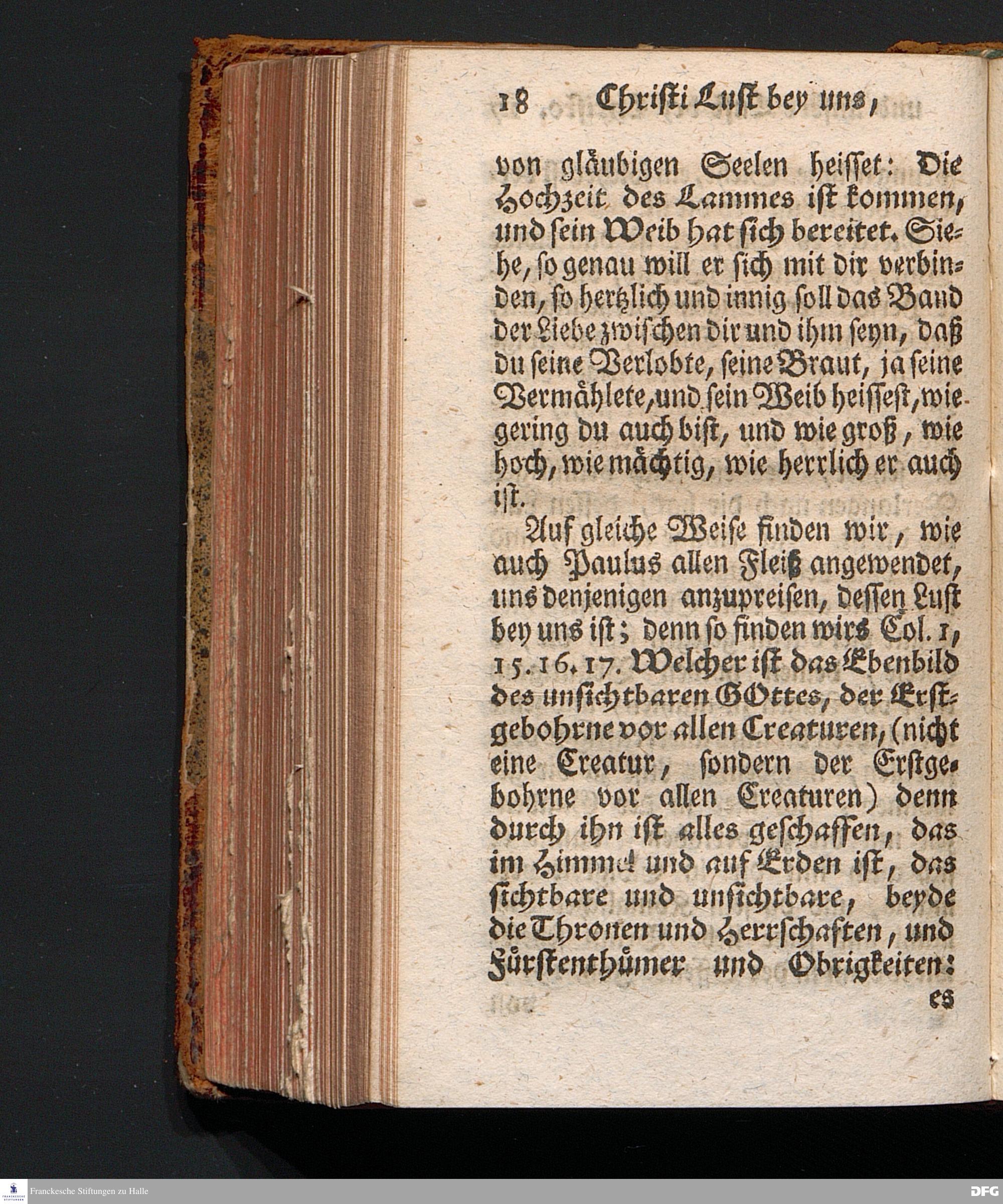 Christi Lust bey Uns, und Unsere Lust bey Christo, Am III.Christtage An.1717. In einer Uber den ordentlichen Evangelischen Text Joh.I, 1=14. In der Stadtkirchen zu Blaubeuren im Hertzogthum Würtemberg, Auf Erfordern Sr.Hochwürden des ietzigen Herrn Prälaten und gantzen Ministerii daselbst, gehaltenen Und auf Verlangen in den Druck gegebenen Predigt vorgestellet von August Hermann Francken, S.Theol.Prof.Past.und Scholarcha zu Halle im Hertzogthum Magdeburg. Zweyte Auflage. HALLE, verlegt im Wäysen=Hause, 1739.
