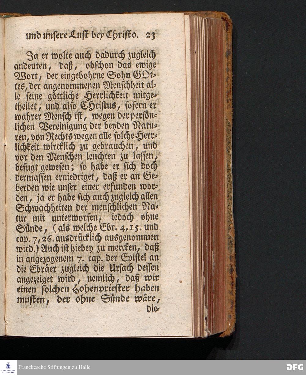 Christi Lust bey Uns, und Unsere Lust bey Christo, Am III.Christtage An.1717. In einer Uber den ordentlichen Evangelischen Text Joh.I, 1=14. In der Stadtkirchen zu Blaubeuren im Hertzogthum Würtemberg, Auf Erfordern Sr.Hochwürden des ietzigen Herrn Prälaten und gantzen Ministerii daselbst, gehaltenen Und auf Verlangen in den Druck gegebenen Predigt vorgestellet von August Hermann Francken, S.Theol.Prof.Past.und Scholarcha zu Halle im Hertzogthum Magdeburg. Zweyte Auflage. HALLE, verlegt im Wäysen=Hause, 1739.