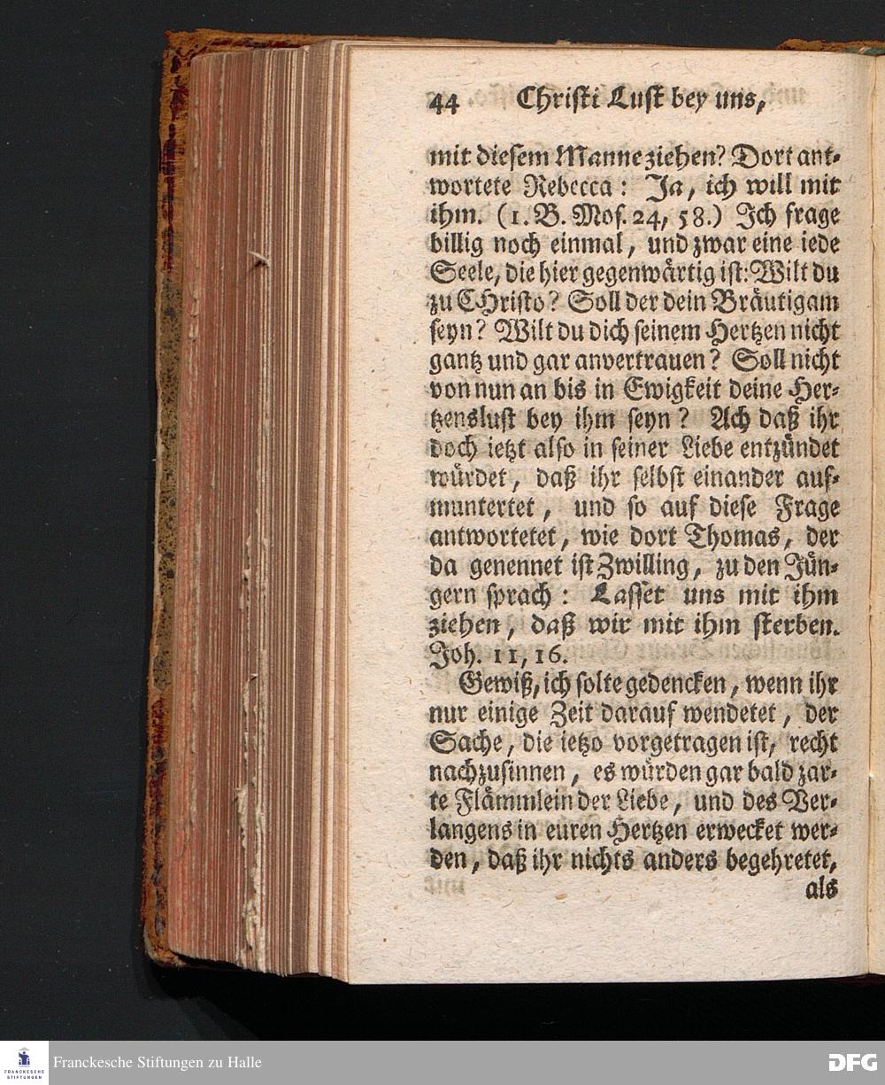 Christi Lust bey Uns, und Unsere Lust bey Christo, Am III.Christtage An.1717. In einer Uber den ordentlichen Evangelischen Text Joh.I, 1=14. In der Stadtkirchen zu Blaubeuren im Hertzogthum Würtemberg, Auf Erfordern Sr.Hochwürden des ietzigen Herrn Prälaten und gantzen Ministerii daselbst, gehaltenen Und auf Verlangen in den Druck gegebenen Predigt vorgestellet von August Hermann Francken, S.Theol.Prof.Past.und Scholarcha zu Halle im Hertzogthum Magdeburg. Zweyte Auflage. HALLE, verlegt im Wäysen=Hause, 1739.